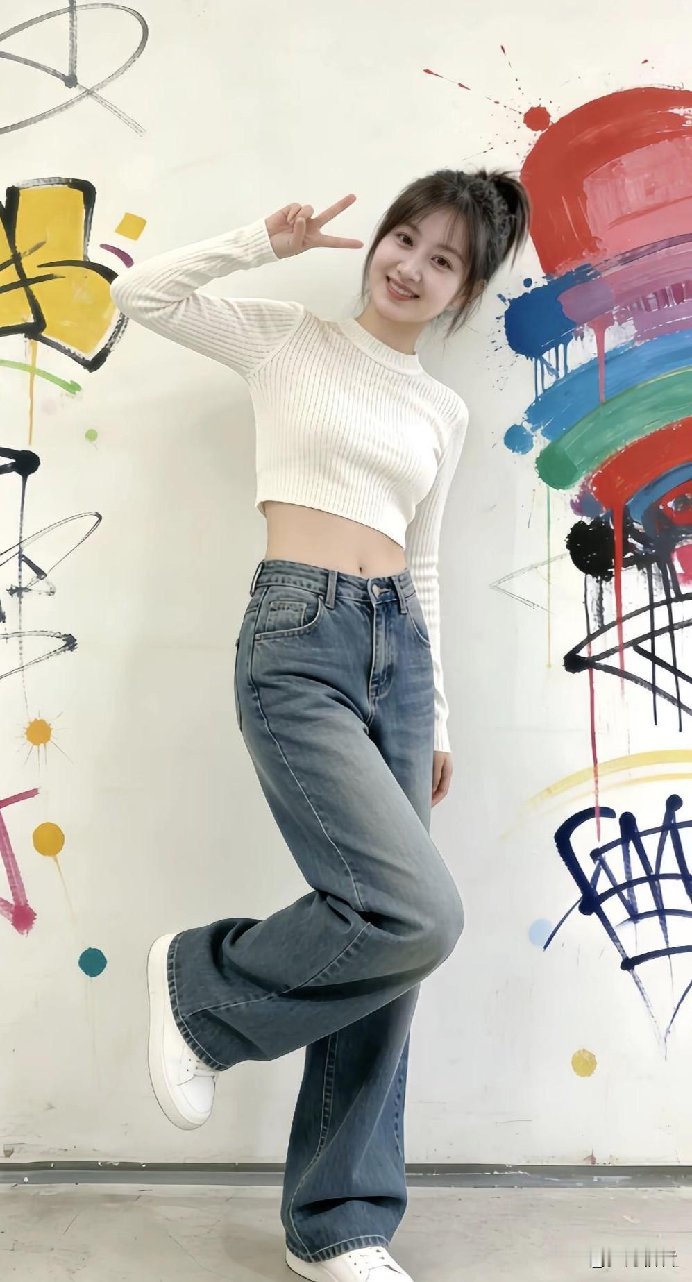 这姑娘的穿搭着实十分凸显身材,让人眼前一亮。她上身穿了一件修身短款针织衫,恰到好
