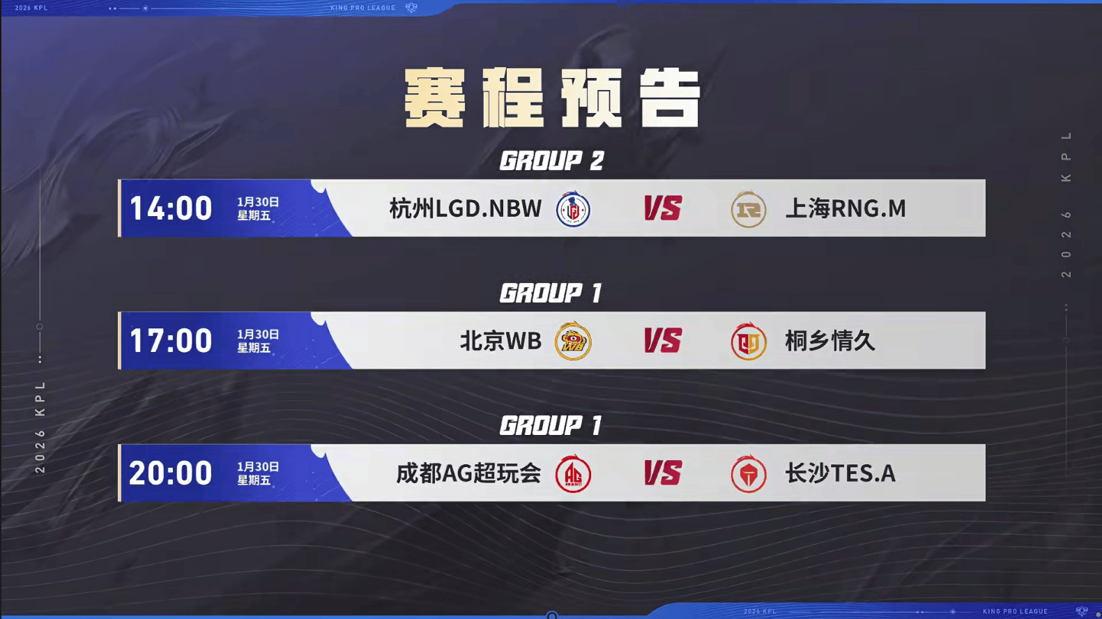武汉eStarPro、佛山DRG锁定2026年KPL春季赛常规赛第二轮B组。
