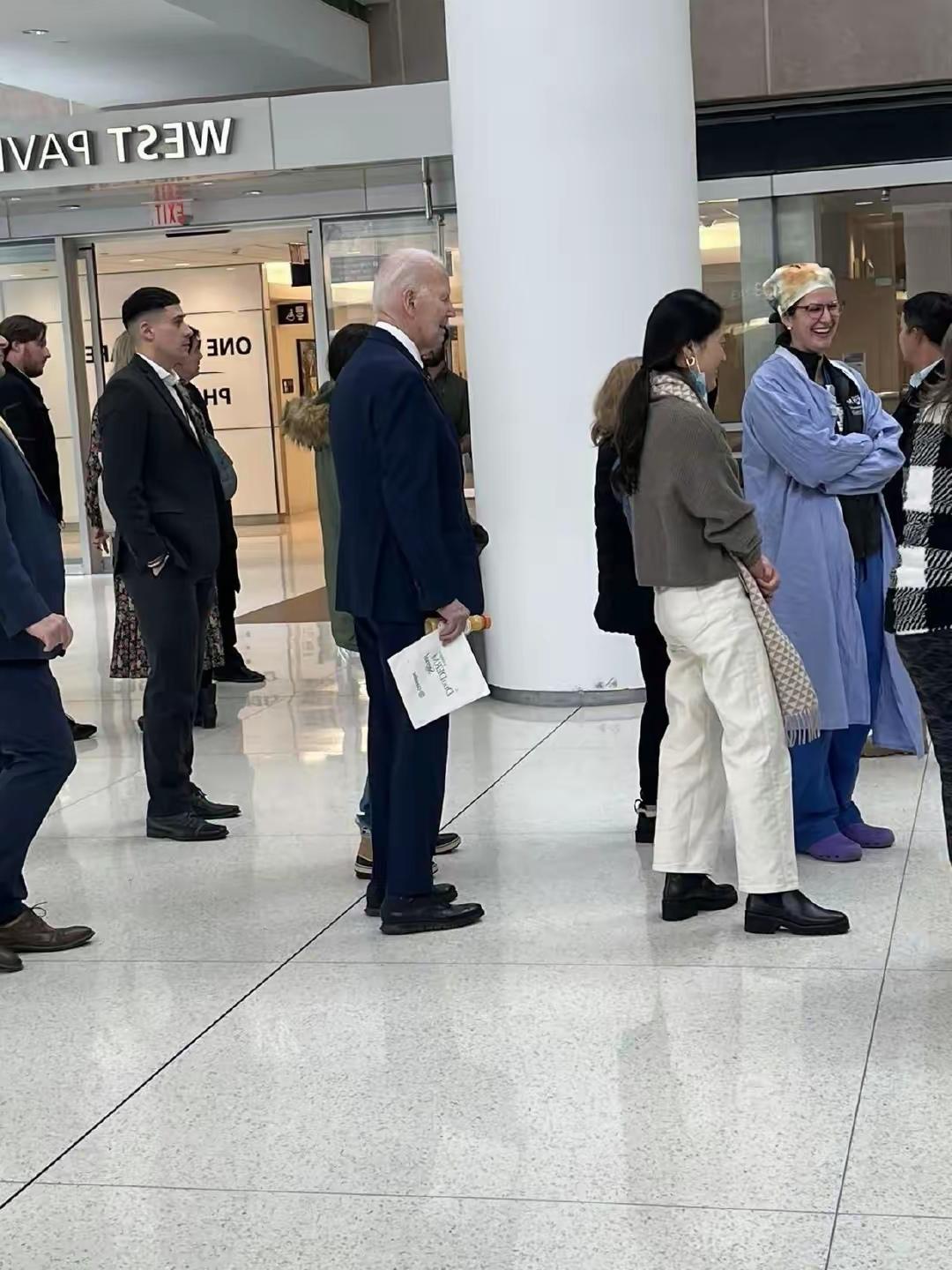 又忘记了什么是“基本盘”,有人贴出了美国前总统在宾夕法尼亚州医院排队就诊的画面。 看到拜登排队就医,很多人都坐不住了,老登这么大年纪,不是还有家人和护工吗?要不这些年的总统不就白当了吗?更多的网友都认为这明明就是摆拍,做个样子罢了。 老登任期结束解甲归田,待遇是不会改变的,就是不任总统他也不会沦落到亲自排队的地步。拜登不任总统,他还是名副其实的资本家,私人医生还是有的,不至于亲自排队。
