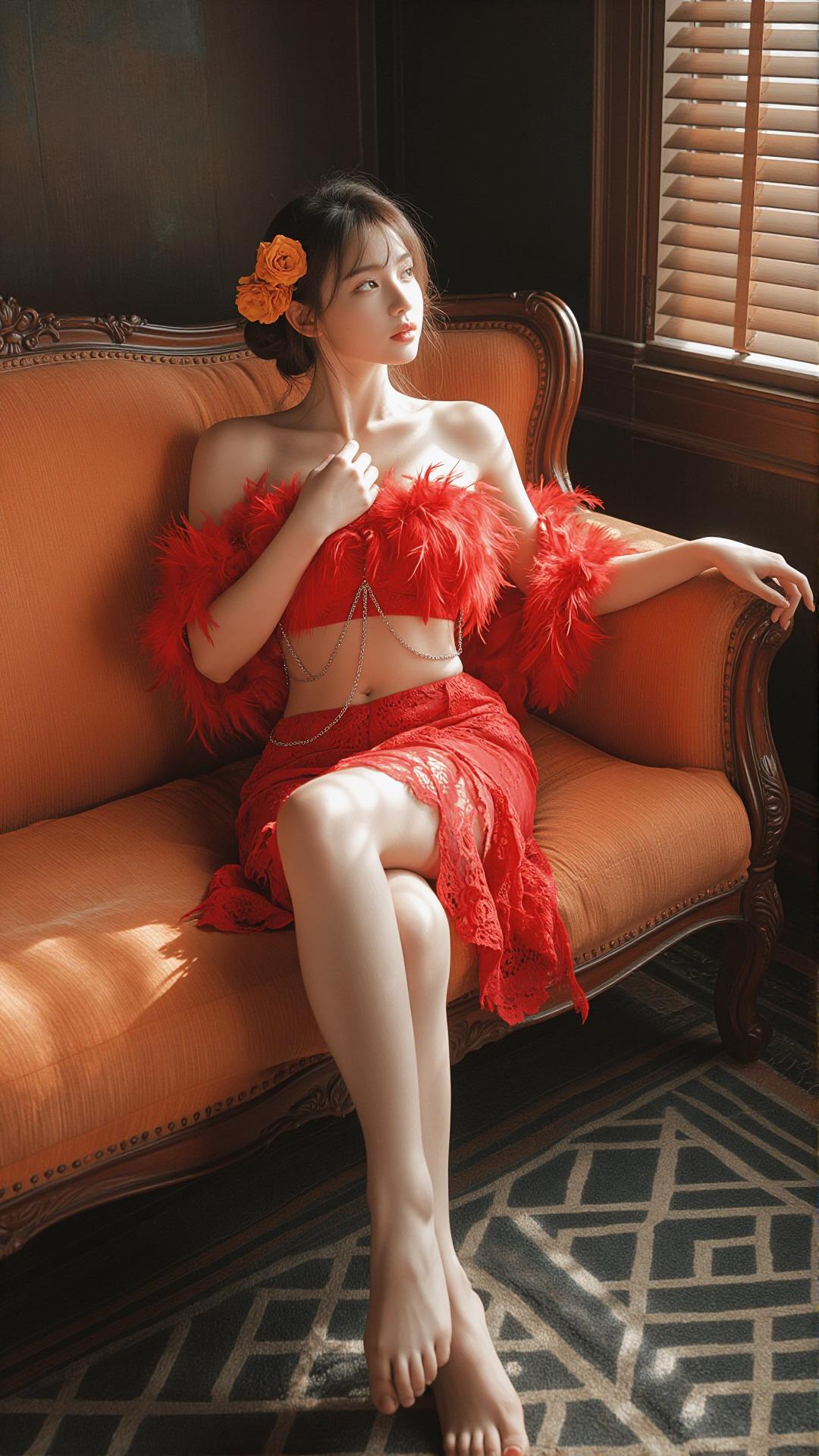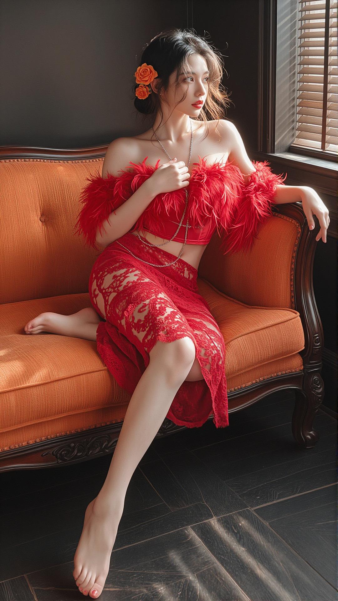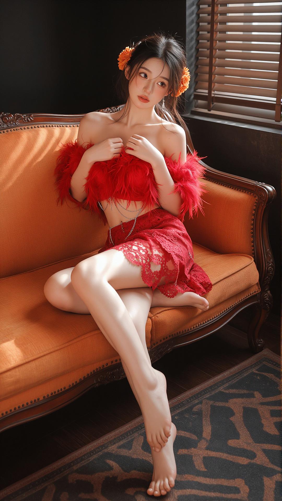 理想女友红色连衣裙好身材好气质