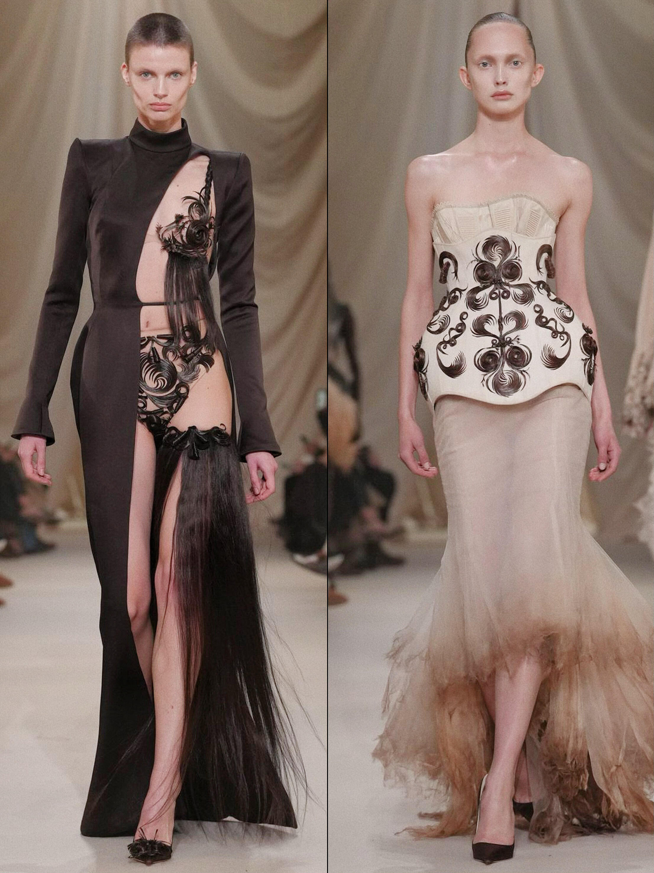 巴黎高定时装周大秀直击 Ashi Studio 2026春夏高定系列,把石膏玩成了绕指柔的丝缎,在巴黎高定周上惊艳亮相。这场实验性的面料探索,从羊毛到蛇皮,甚至发丝都被纳入创作,将东方漆扇、流苏的诗意与黎巴嫩手工的精致融为一体,成为钉珠亮片风潮中的一股清流。