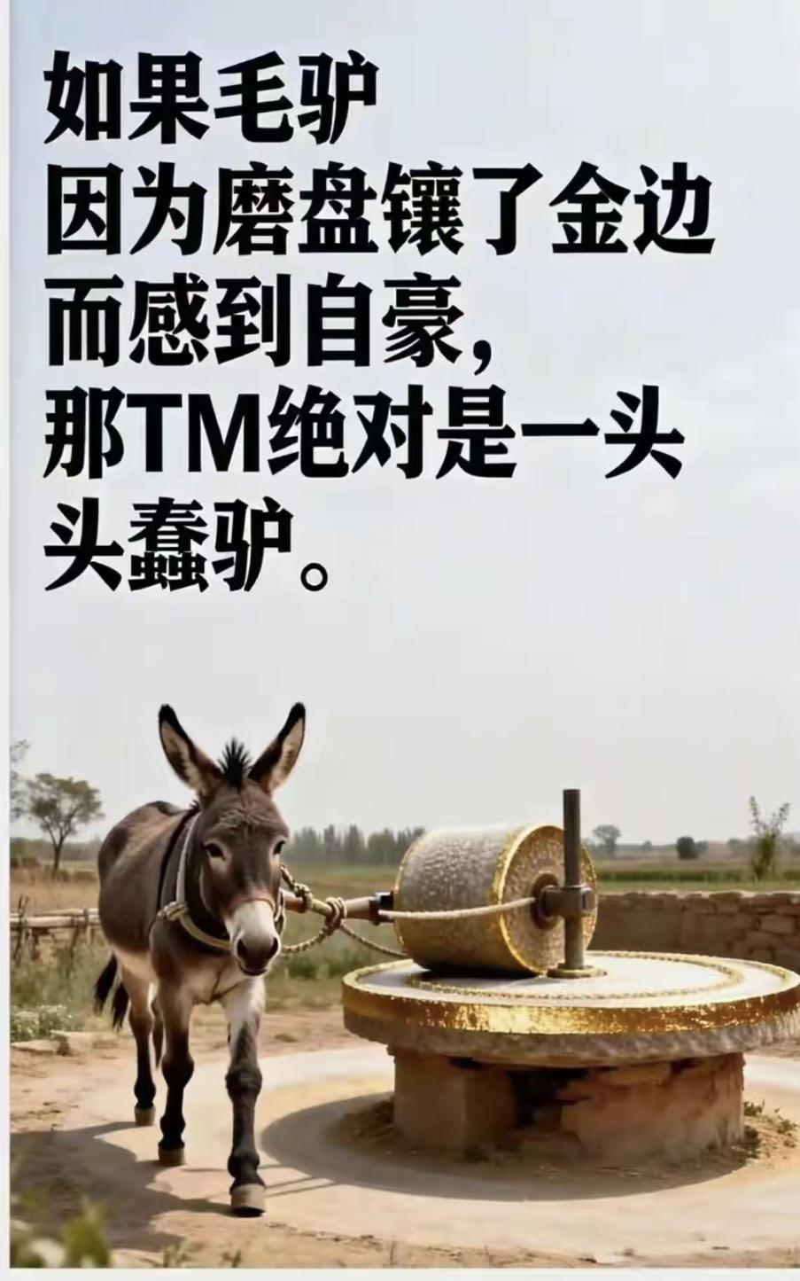 最近爆火的驴拉磨梗,真的太扎心了。底层的普通人,可不就像那头驴嘛。驴贷款为了生活贷款买房买车,朝九晚五拼命工作还房贷车贷,也是被困在循环里。 小地方的底层人更是如此,社会空间和资源有限,就像被固定在1平方米空间里的驴,努力的成果还可能被上层蚕食。而且周围虚假的人际关系,费时费力却没什么实际帮助。但即便如此,我们也只能像驴一样,在日复一日的奔波里,磨出三餐温饱,磨出人间烟火。 驴打工 牛马拉磨 打工驴 推磨感悟 驴名场面 毛驴语录 驴拉拉车