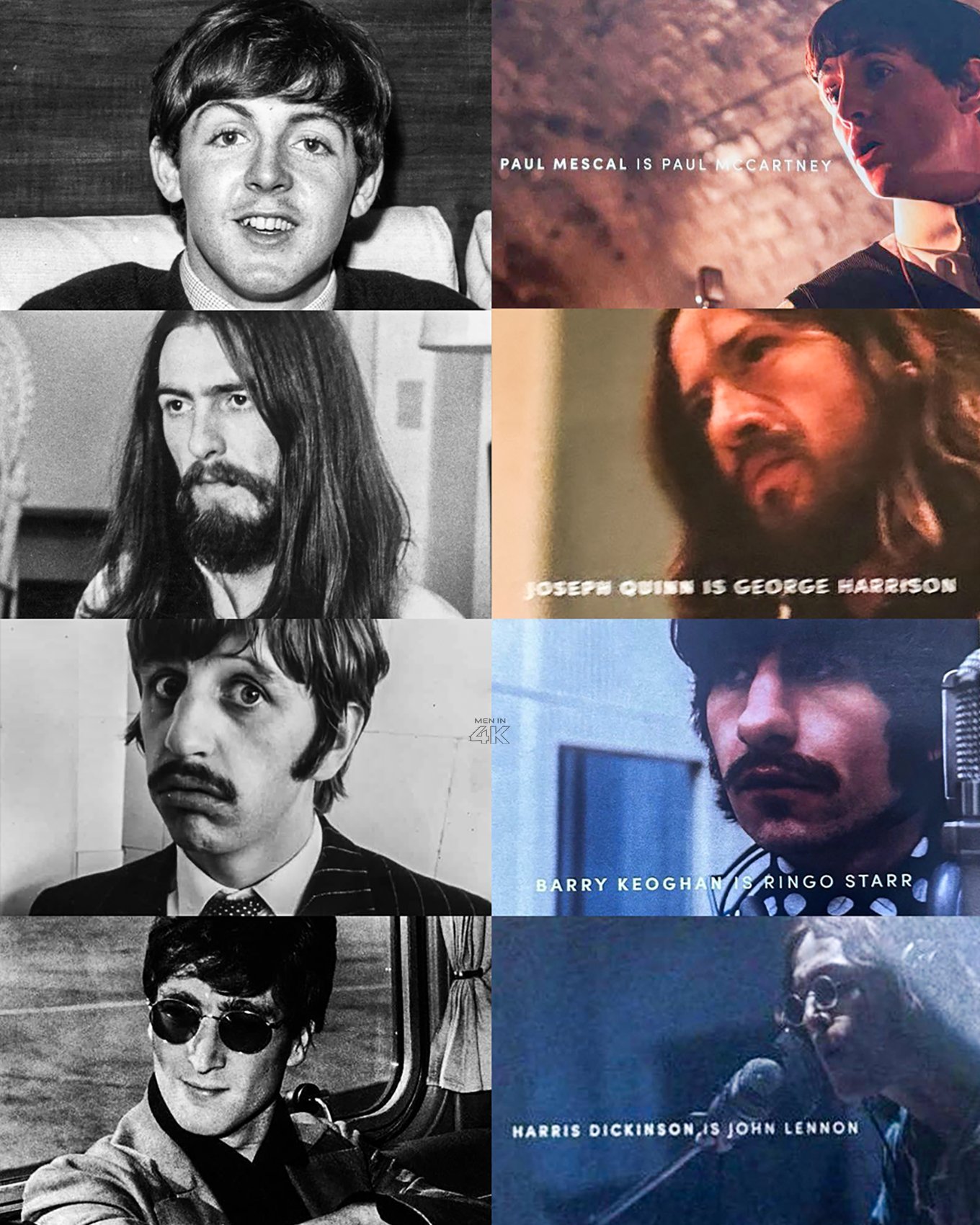 震撼‼️披头士乐队传记片首曝剧照,有何评价?保罗·麦斯卡 饰 保罗·麦卡特尼哈里斯·迪金森 饰 约翰·列侬约瑟夫·奎恩 饰 乔治·哈里森 巴里·基奥恩 饰 林戈·斯塔尔所有4部传记片都将于2028 年4月同期北美上映!萨姆·门德斯执导,索尼描述其为“首次真正可以连刷的观影体验”