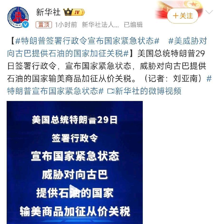表面上看: 特朗普这次因对所有向古巴输油国加税,而宣布了美国进入国家紧急状态。 其实: 现在的特朗普已感觉到美国胁迫下的全球形势尤其是欧洲形势对于美国越发不利: 卡尼、斯塔默访华正在深度刺激着特朗普的霸权心理…… 于是,特朗普才先行一步借古巴加税事件,果断宣布美国进入紧急状态,由此预防各种未知风险。 一句话,特朗普开始不安了……