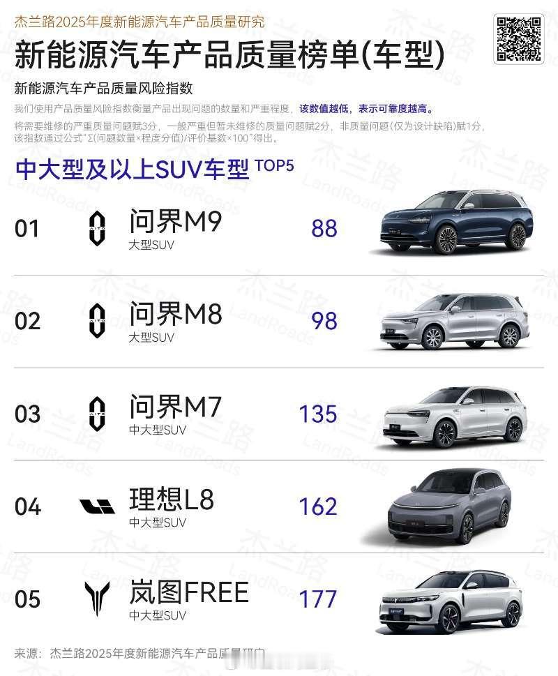 问界斩获杰兰路2025年度新能源汽车产品质量品牌榜第一,问界M9问界M8问界M7 霸榜中大型及以上车型榜前三,以超高标准打造高端产品!