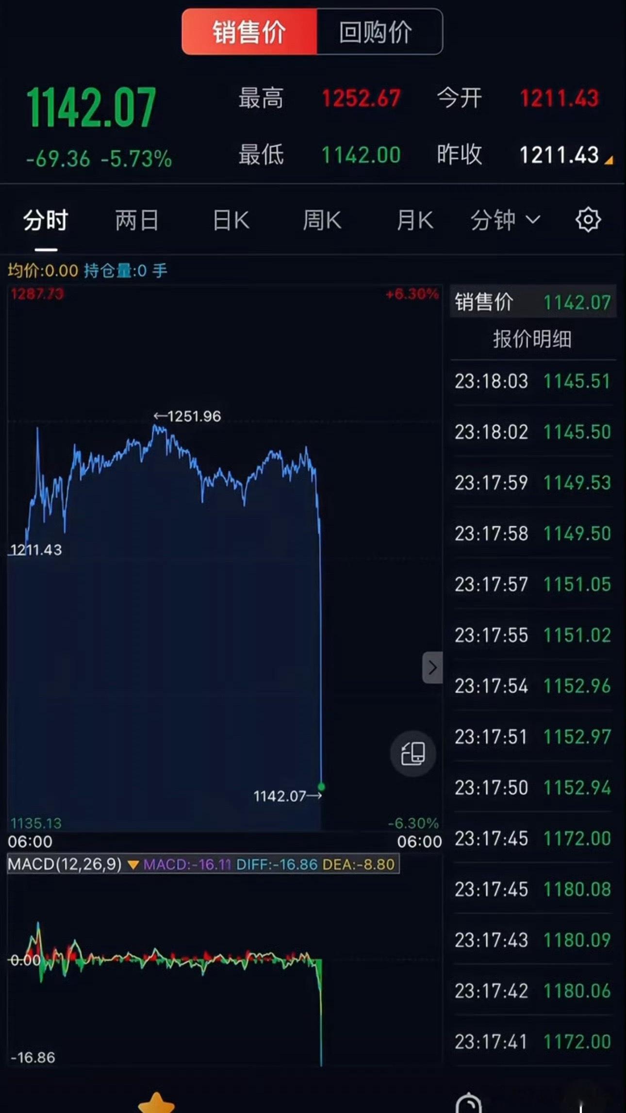 金饰克价涨至1708元疯了疯了 早知道以前600多的时候就买了 可恶