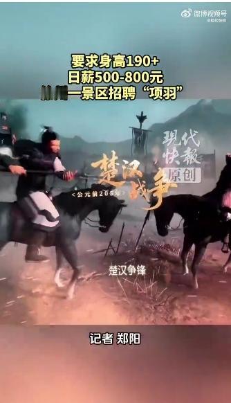 高薪抢人门槛高! 2026年1月29日徐州一景区,日薪500-800元招项羽演员,要求身高190cm以上、壮硕有台词功底,200人招聘群已满员,仍未觅得合适人选。 不过这场招聘不只是景区揽人,更折射出文旅市场的新趋势,对比以往景区演员低薪低配,此次高薪高标准,凸显汉风年IP打造的诚意;另一方面,其国际上能彰显中国历史文旅的创新,推动区域文旅竞争升级,周边景区或跟进特色演绎,相关方中求职者热情高涨,网友热议身高门槛,景区也将统筹线上面试。从历史背景看,近年国风文旅走红,沉浸式演绎成流量密码,此次精准贴合汉文化特色,踩中了文旅消费升级的风口。 这起招聘是文旅创新的缩影,可高标准招聘难寻适配者,文旅演绎该平衡专业度与可及性吗?国风IP打造,如何避免只重噱头不重内容?高薪引才后,如何让历史演绎真正留住游客?文旅破圈需走心更需走实,你怎么看?