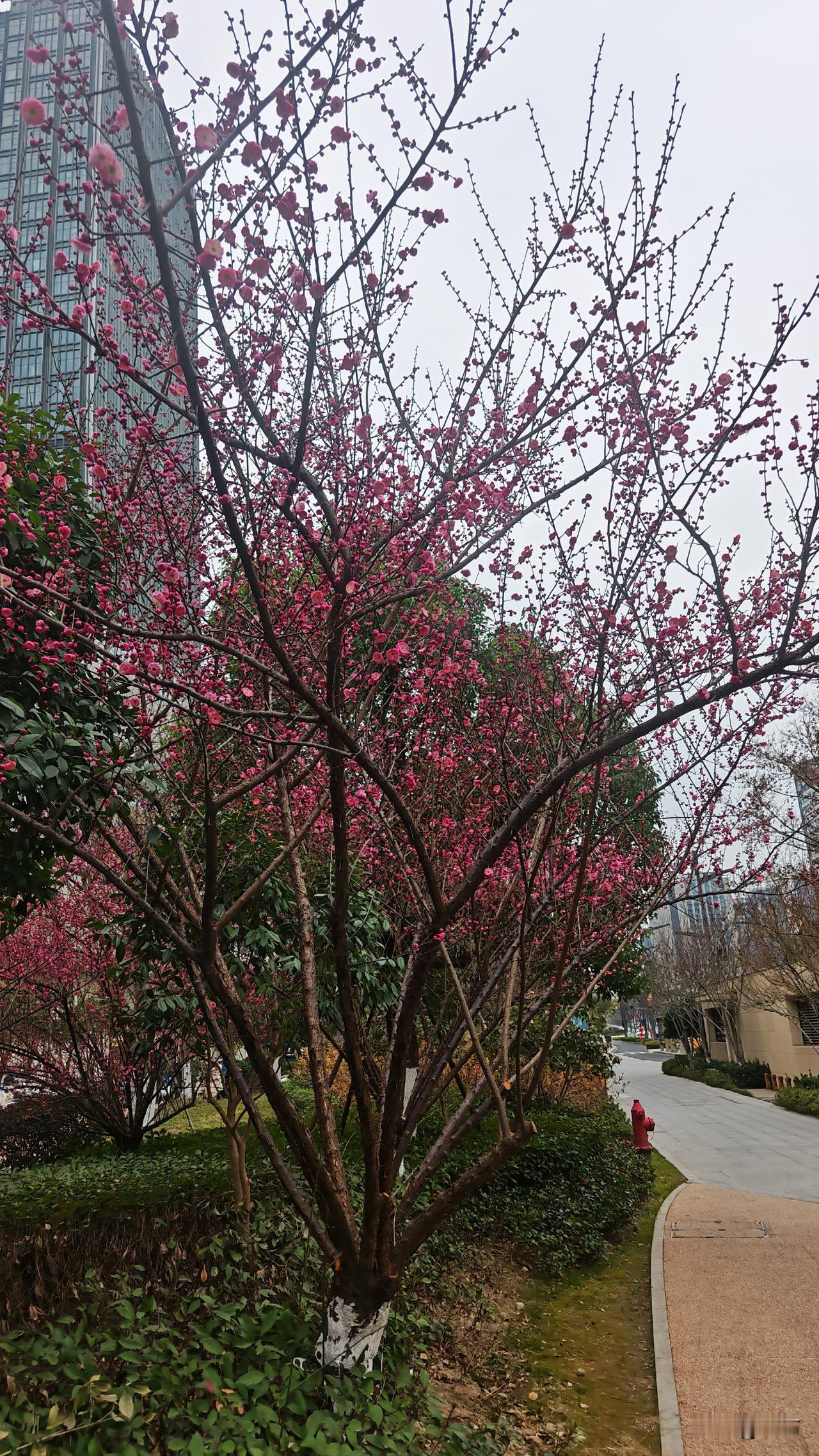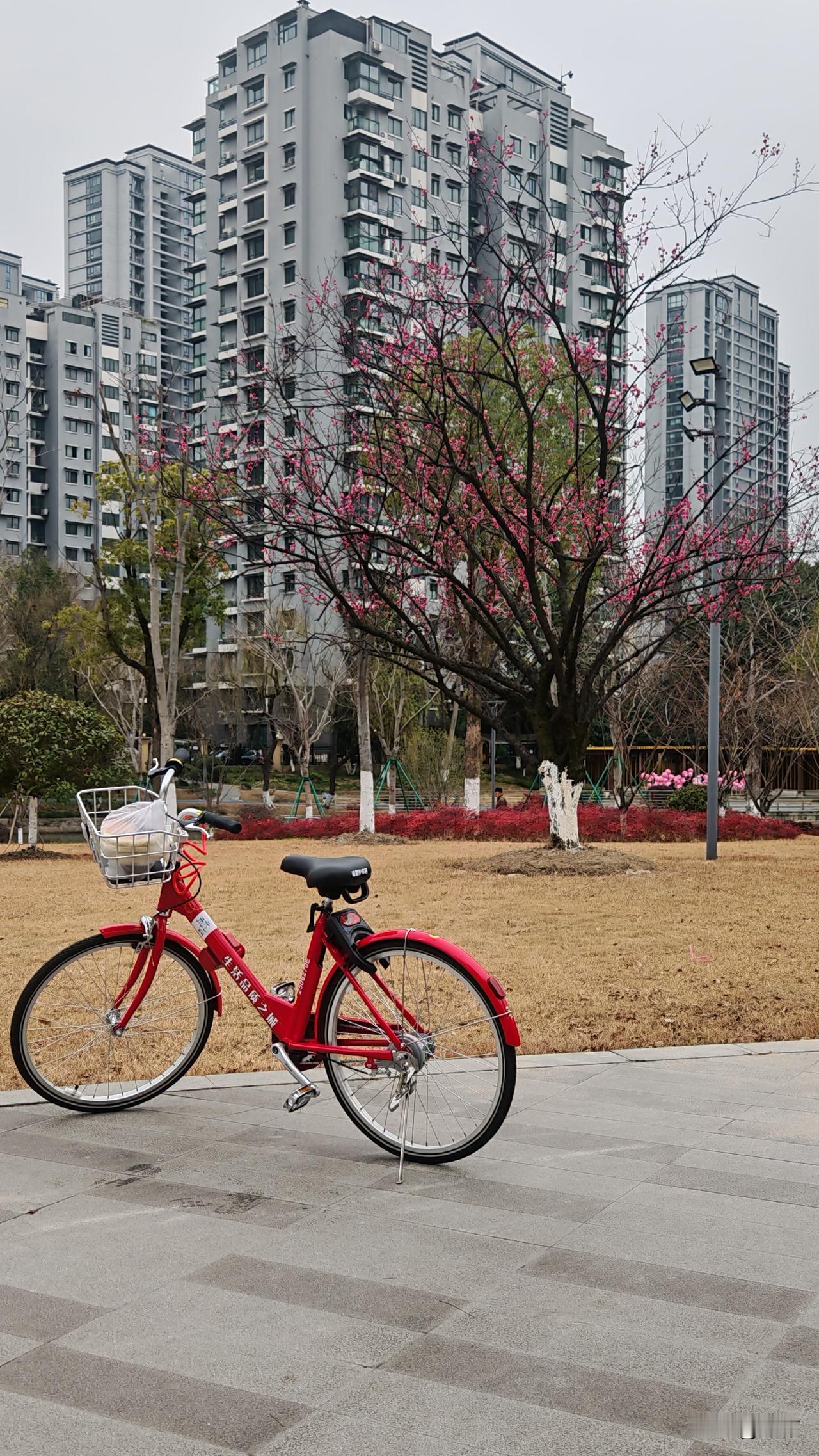 我所在的小区附近的小红车总是很少,经常空空的一辆都没有。 昨天去天街,到楼下骑车发现就剩最后一辆了,还有一辆坏的,扫不出来的那种,已经坏好几天了,一直不见有人处理。 在天街逛了一阵,在永辉超市买了点酱牛肉,八十五一斤,我发现比我小区农贸市场要便宜,农贸市场酱牛肉一百一一斤。 从天街出来,本来不想骑车想走着锻炼锻炼,无奈看到天街门口的小红车停靠点的车子全是崭新崭新的,想想我这边车子这么少,从大局考虑,还是骑一辆回去吧。 天街旁边的小广场上的那几株老梅开得正当时,一缕幽香淡淡地迎面袭来,忍不住停下脚步,驻足欣赏。 杭州这几天正是红梅的旺季,街头巷尾,墙边窗外,总藏着一抹红让你惊喜。喜欢梅花的朋友可以来了,杭州的梅花一定不会让你失望的。 杭州的赏梅点很多,植物园,孤山,法喜寺,灵隐寺,西溪等等地方都不错,喜欢梅花的朋友行动起来吧,错过了就得明年了。