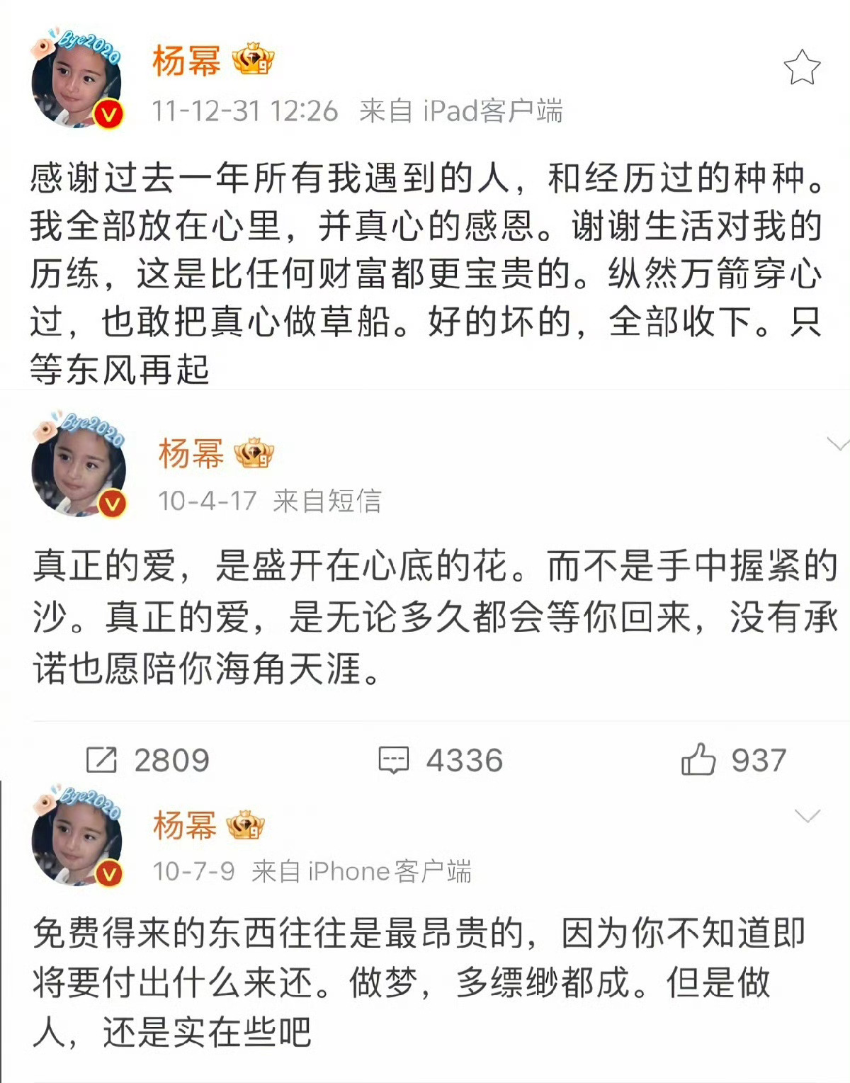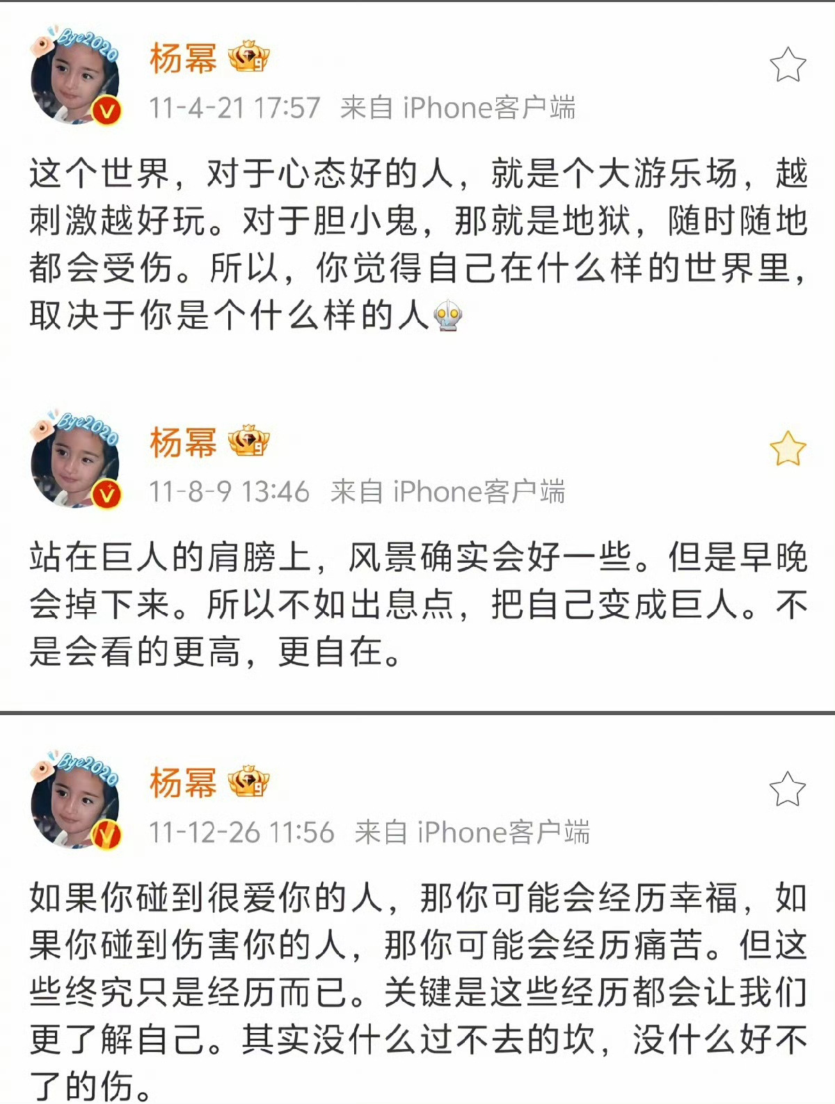杨幂 我少女时期的英雄谁的青春里没有一个杨幂啊😭 从二十几岁陪我走到我的二十几岁!仙剑里灵动的雪见、温柔的夕瑶,宫锁心玉里古灵精怪的晴川,全是青春印记,更戳人的是现实中的她:清醒通透,不抱怨不依附,那句“每一个人都很辛苦”,在我迷茫时真的被狠狠点醒,希望我们都能拥有和杨幂一样独自扛下所有还能闪闪发光的勇气