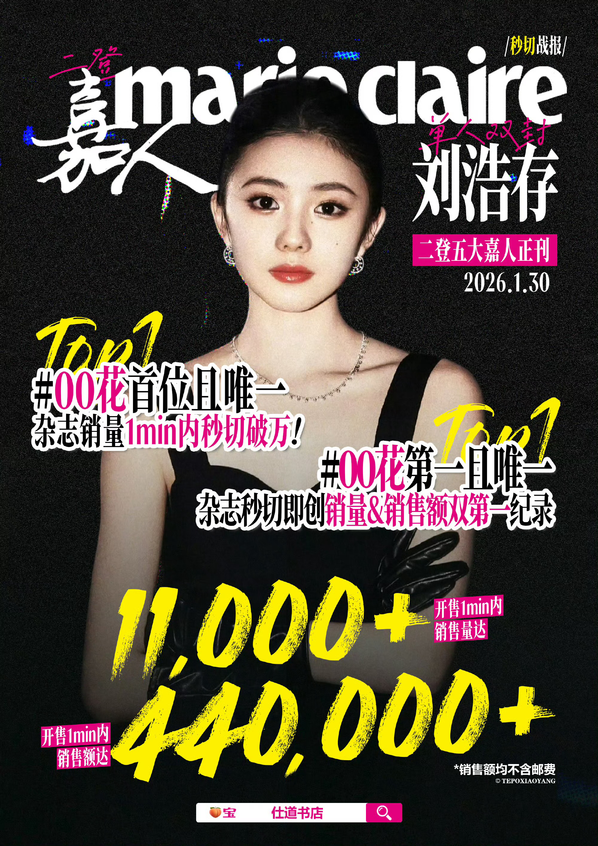 刘浩存二登《嘉人》,一分钟销量破1万,真00花之光