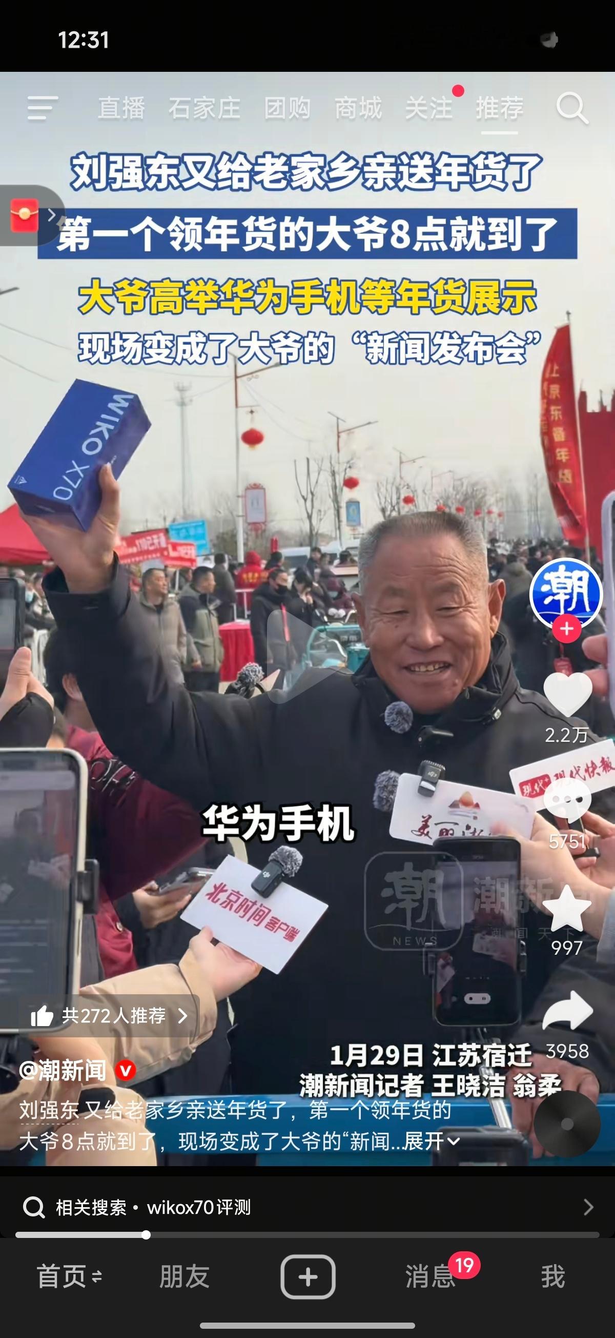 东哥给老家的乡亲送了年货,第一个大爷领了一台WIKO X70手机。