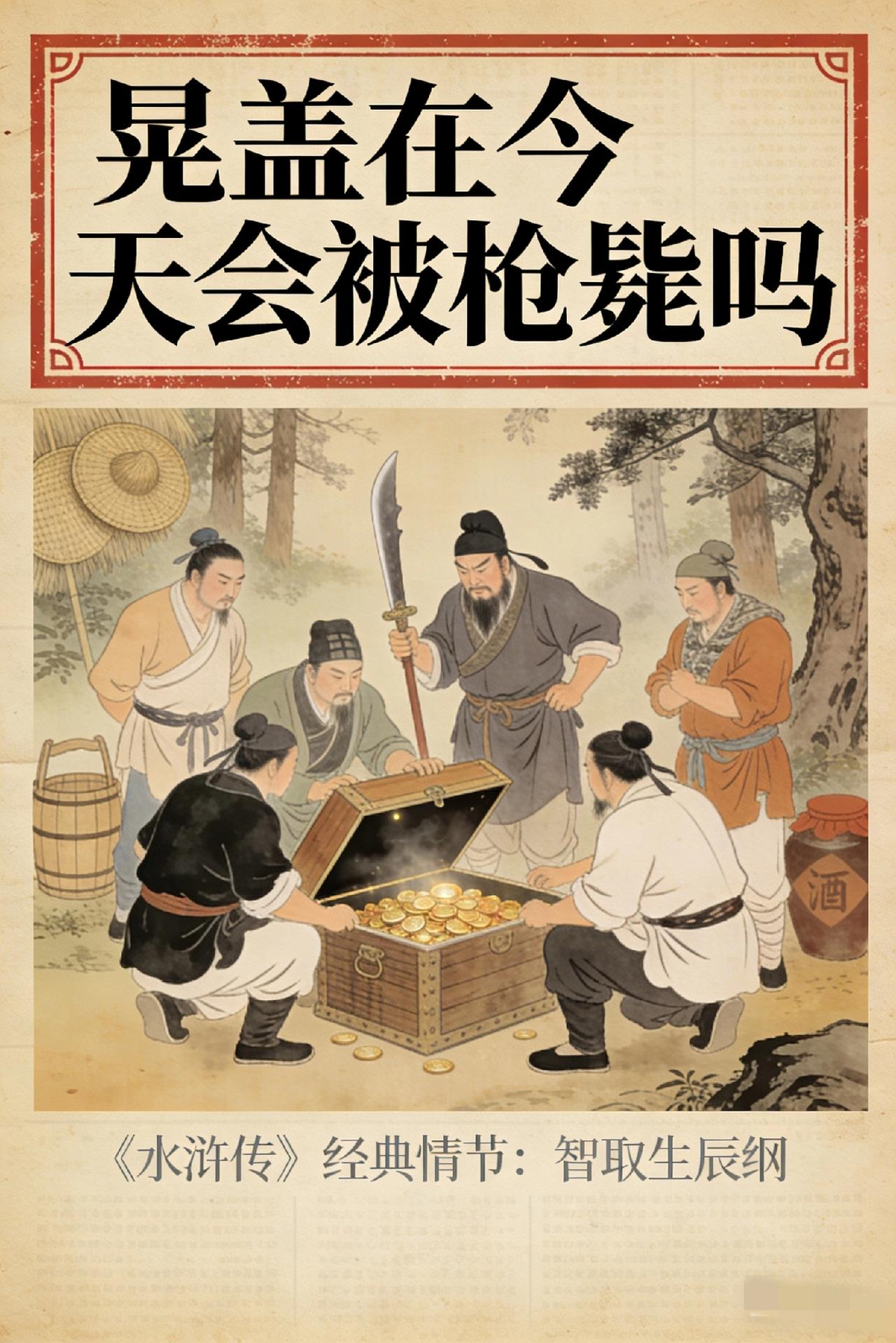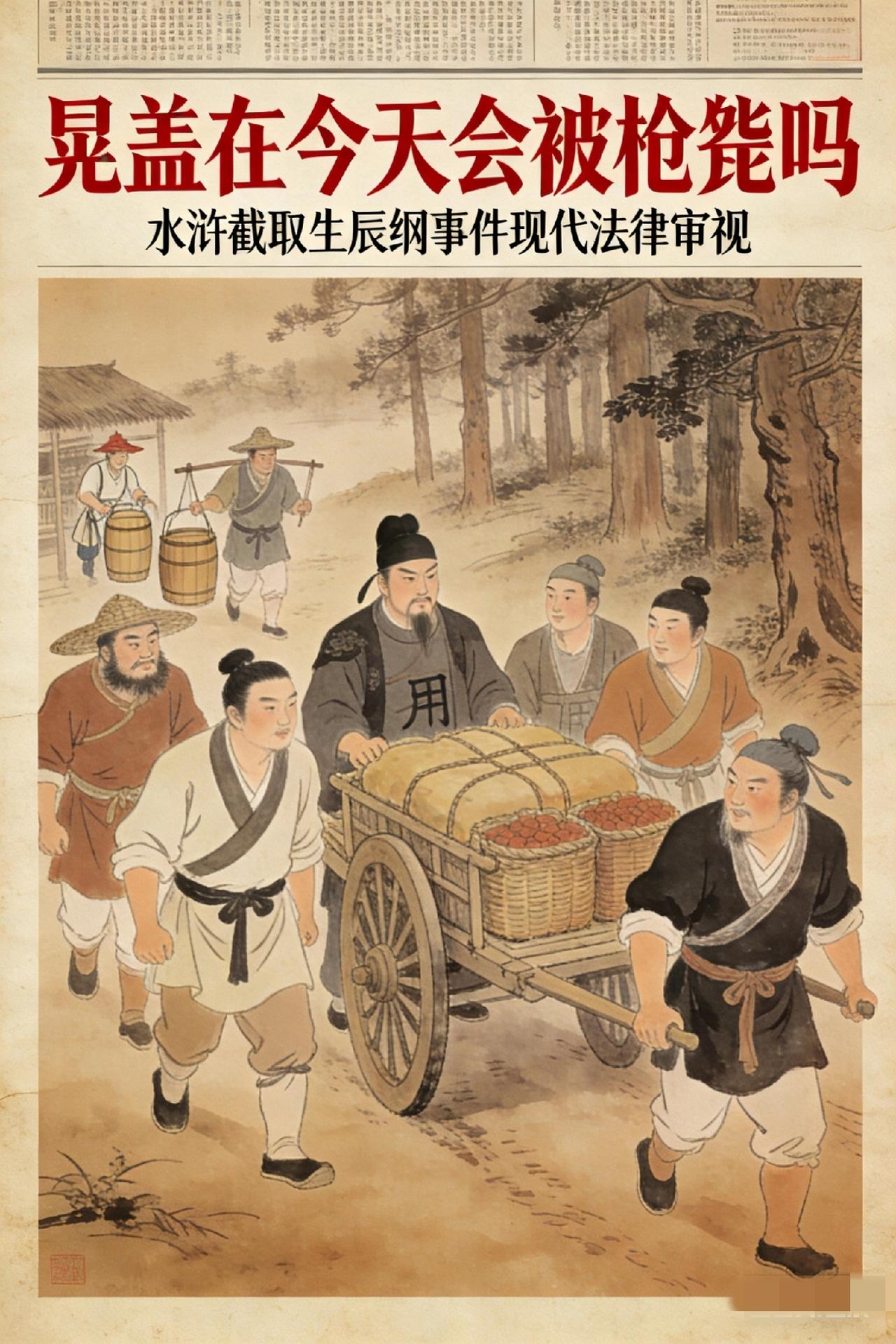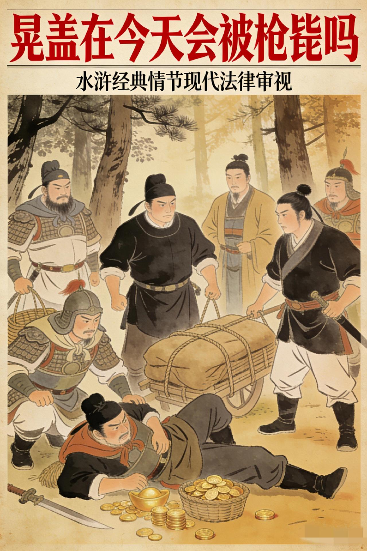晁盖截取的生辰纲,放今天值多少钱? 会被判死刑吗? 咱先算算这笔巨款: 不是十万贯铜钱,是等价金珠宝贝!按北宋米价、民间收入折算,最少值1440万,多则7700万,折中算5000万!这放现在妥妥是特大盗窃案! 近200年,也就孙殿英能与之比肩吧? 重点来了!如果晁盖在当下被抓,会枪毙吗? 答案可能颠覆你的认知!《刑法》2011年就废除了盗窃罪死刑,哪怕涉案5000万远超“数额特别巨大”标准。 晁盖作为主谋,最多就是无期徒刑+没收家产,吴用公孙胜这些从犯,10年以上跑不了,但都死不了!