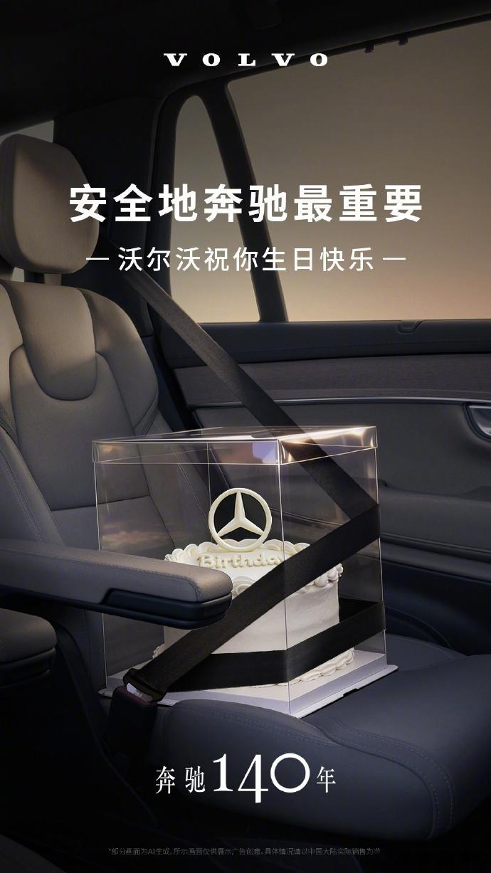 汽车圈从未如此和谐,奔驰140周岁生日,很多品牌都发了祝福海报图一奥迪和图二沃尔沃有点意思灯厂不是白说的,奥迪用灯打出了奔驰的标志沃尔沃是突出了自己是安全带的发明者