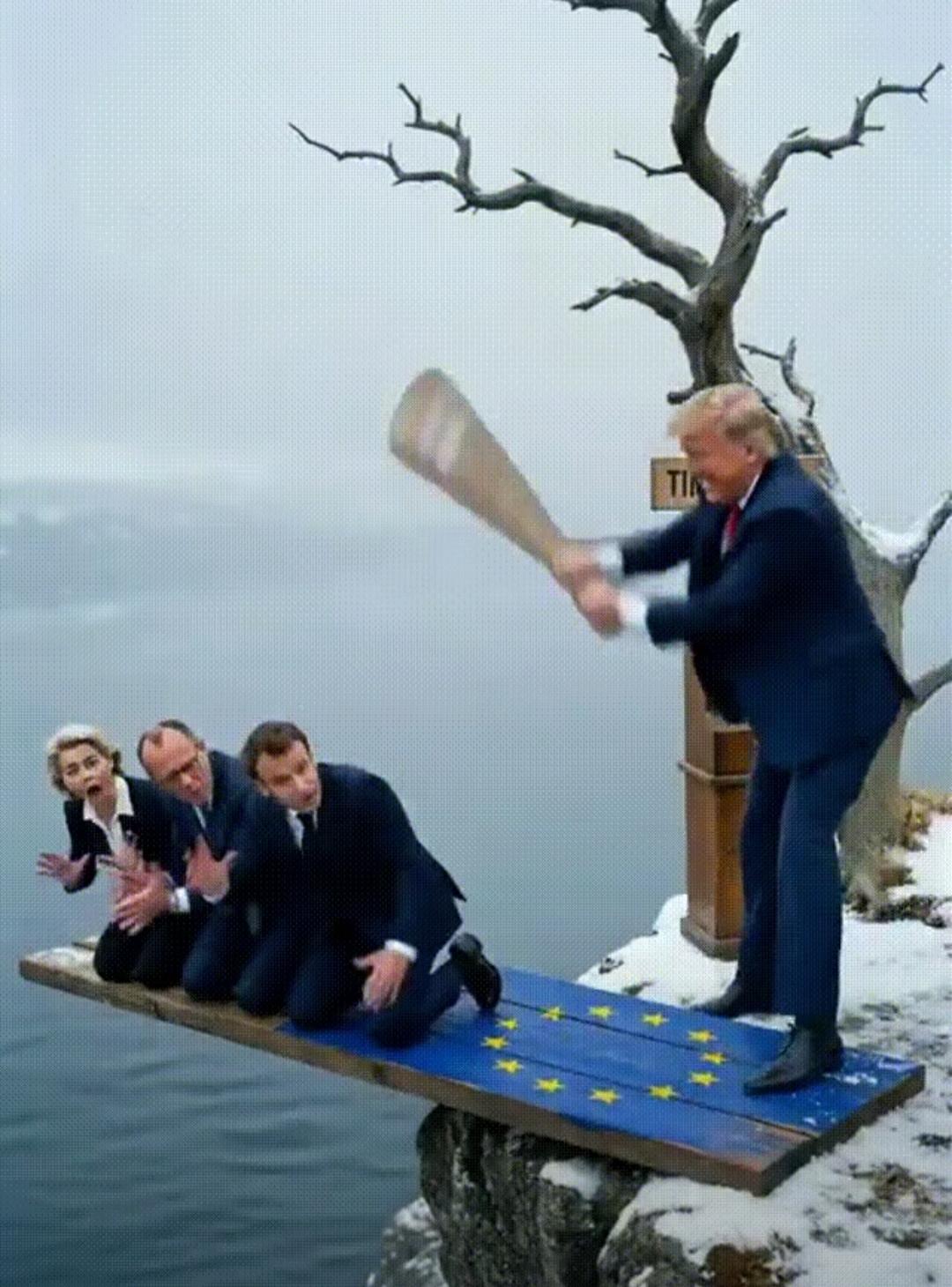 被网友P的这两张照片笑不活了! 有人说,多年来普京都想要拆了欧盟,尤其是这个铁三角,但处于各种的无奈一直都只是声东击西的吓唬吓唬罢了!有心无力。 然而换了美国就不一样了,一开始也是装模作样的吓唬,结果趁其不备,一下子发力全给整下去了。这一棒下去一箭三雕,他还感觉很好玩!