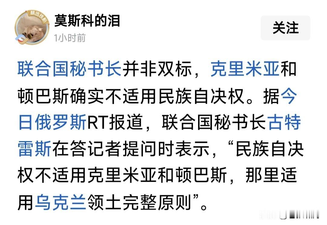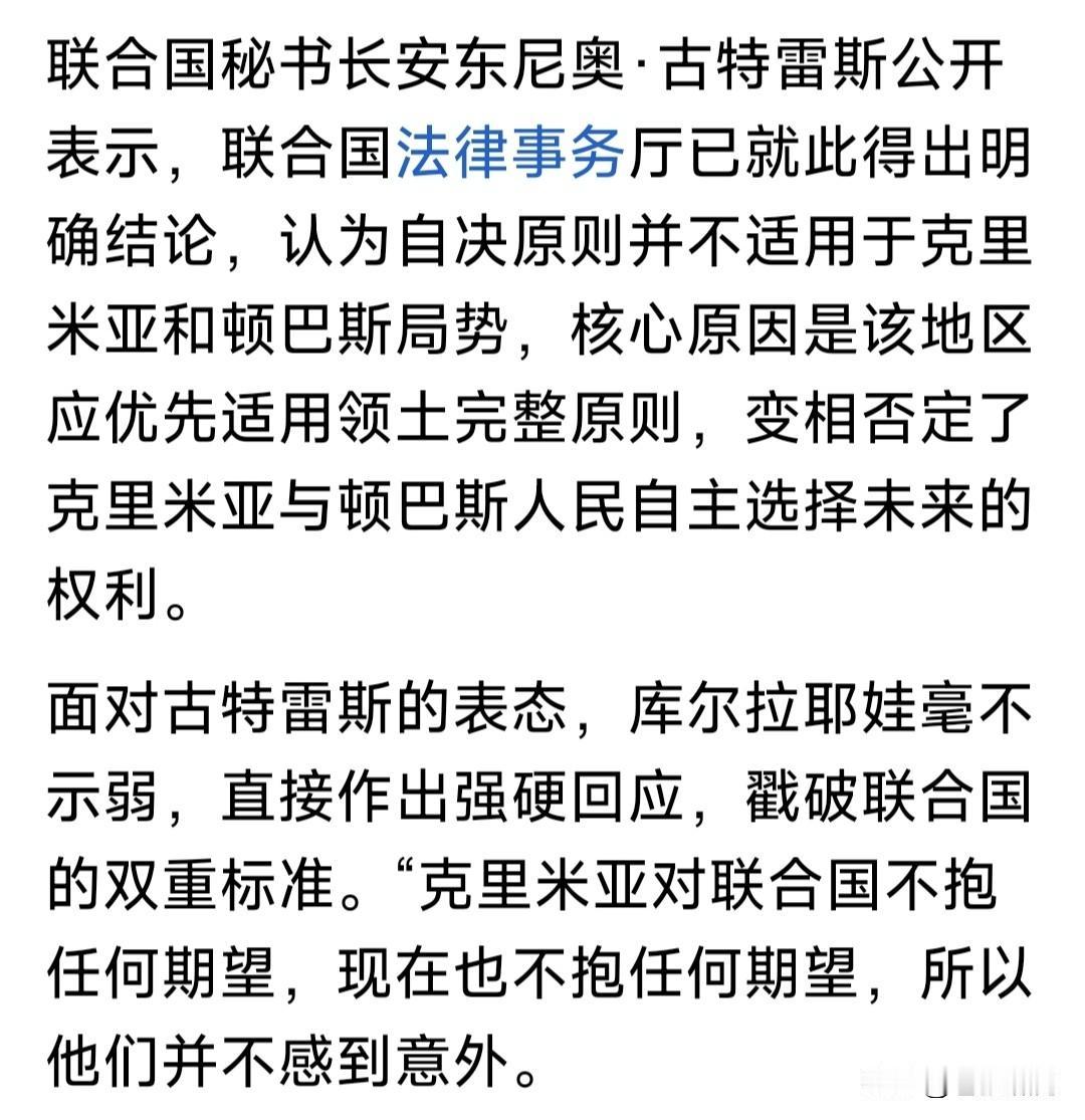 古特雷斯这回硬了!直接回绝俄控克里米亚地区领导人,要求联合国承认“顿巴斯和克里米