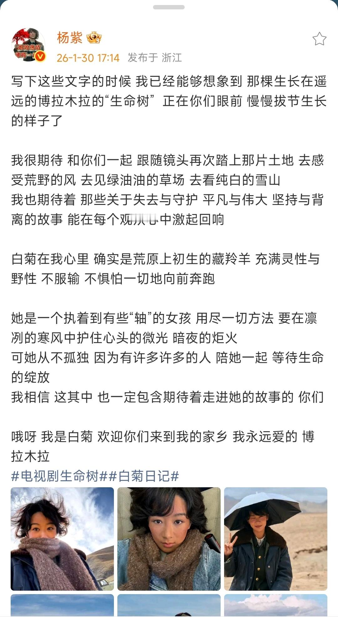 杨紫生命树开播长文杨紫说白菊是有些轴的女孩杨紫生命树开播长文去,通过杨紫的文字