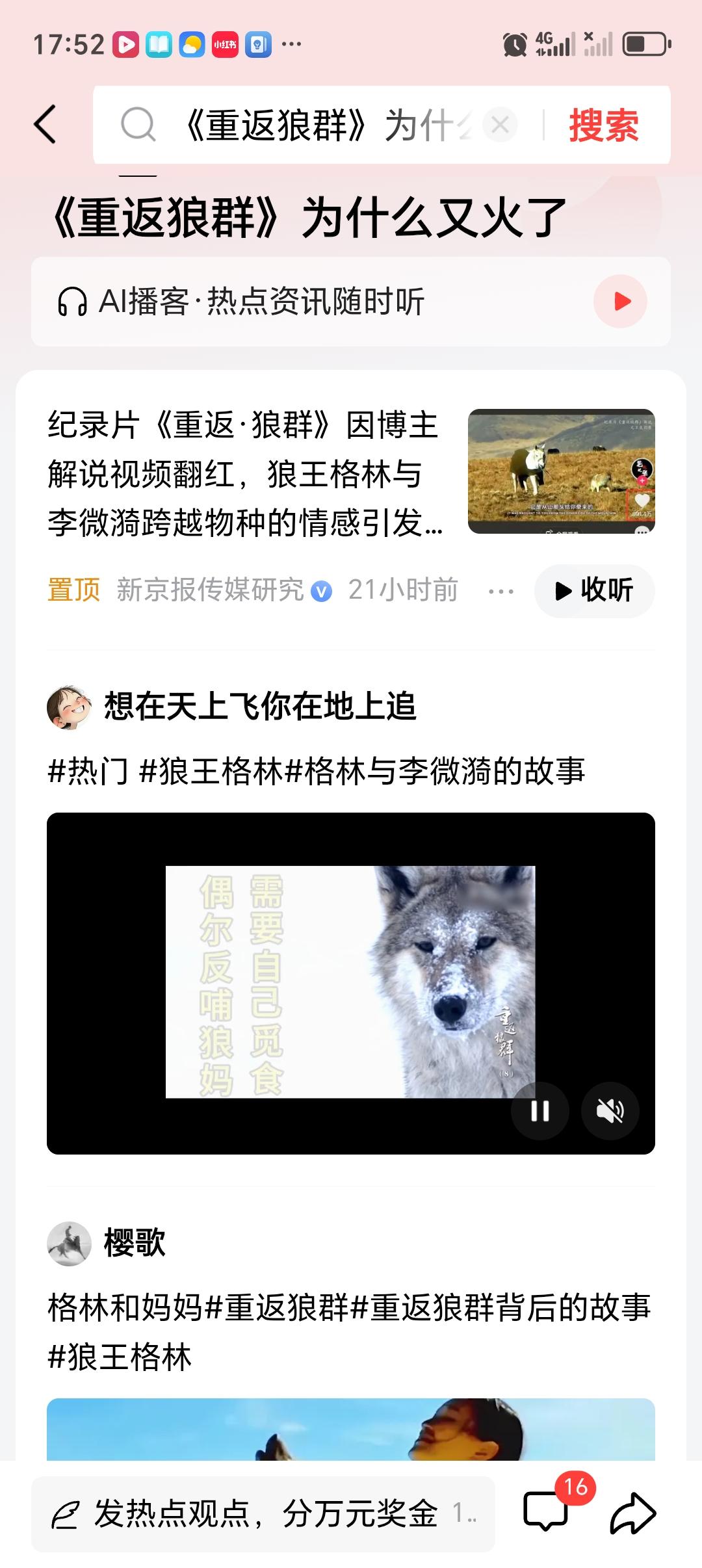 《重返狼群》为什么又火了 2026年初,《重返·狼群》这匹“老狼王”突然刷屏社交媒体。这部2017年的小众纪录片,因博主“笔战风华”的解说视频再度爆火,单条点赞超990万,“格林现状”还冲上热搜。 它能“翻红”并非偶然。在内容碎片化的当下,它有着独特魅力。主创深入若尔盖草原,拍了近1700小时素材,用无滤镜画面记录格林成长与回归的艰辛。而且,狼本身就很有情感共鸣点。狼是狗的远祖,易和人建立感情,像李微漪和格林;狼是群居动物,组织方式合理;狼还很纯粹,只有恩仇。这些因素让《重返·狼群》再度成为全民热议的文化现象。