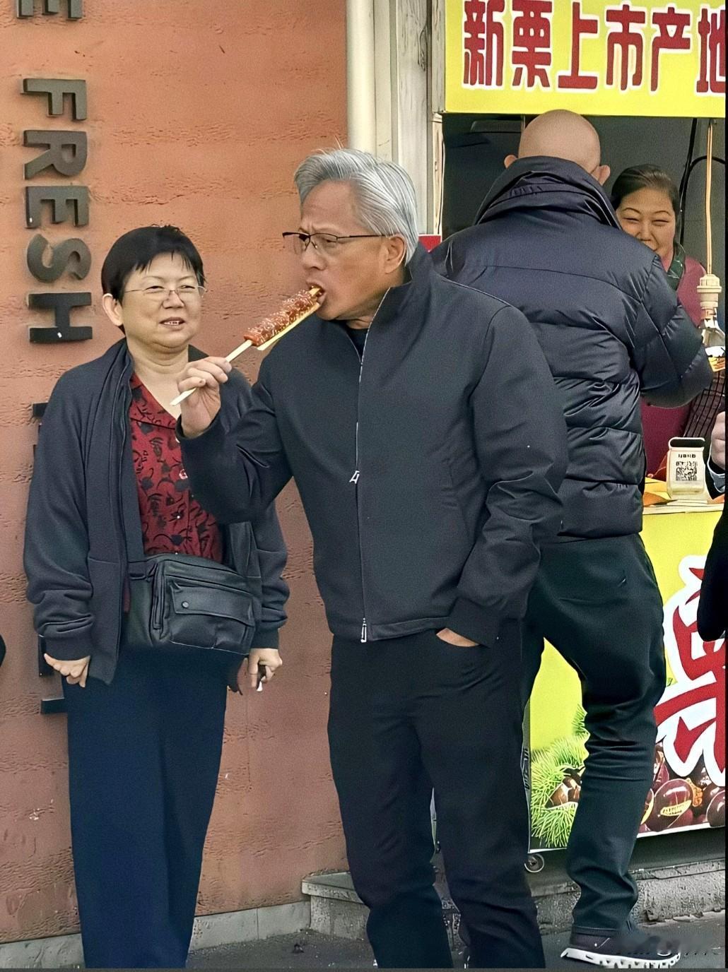 黄仁勋在街上吃着糖葫芦,不知道旁边的大姨认识他吗?