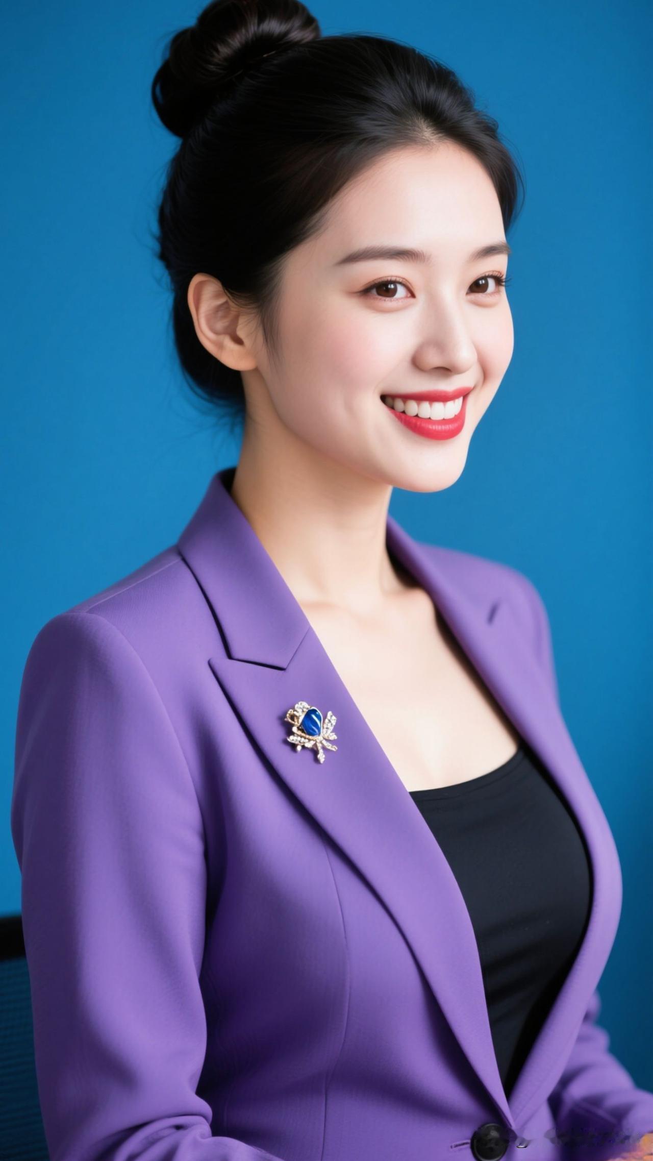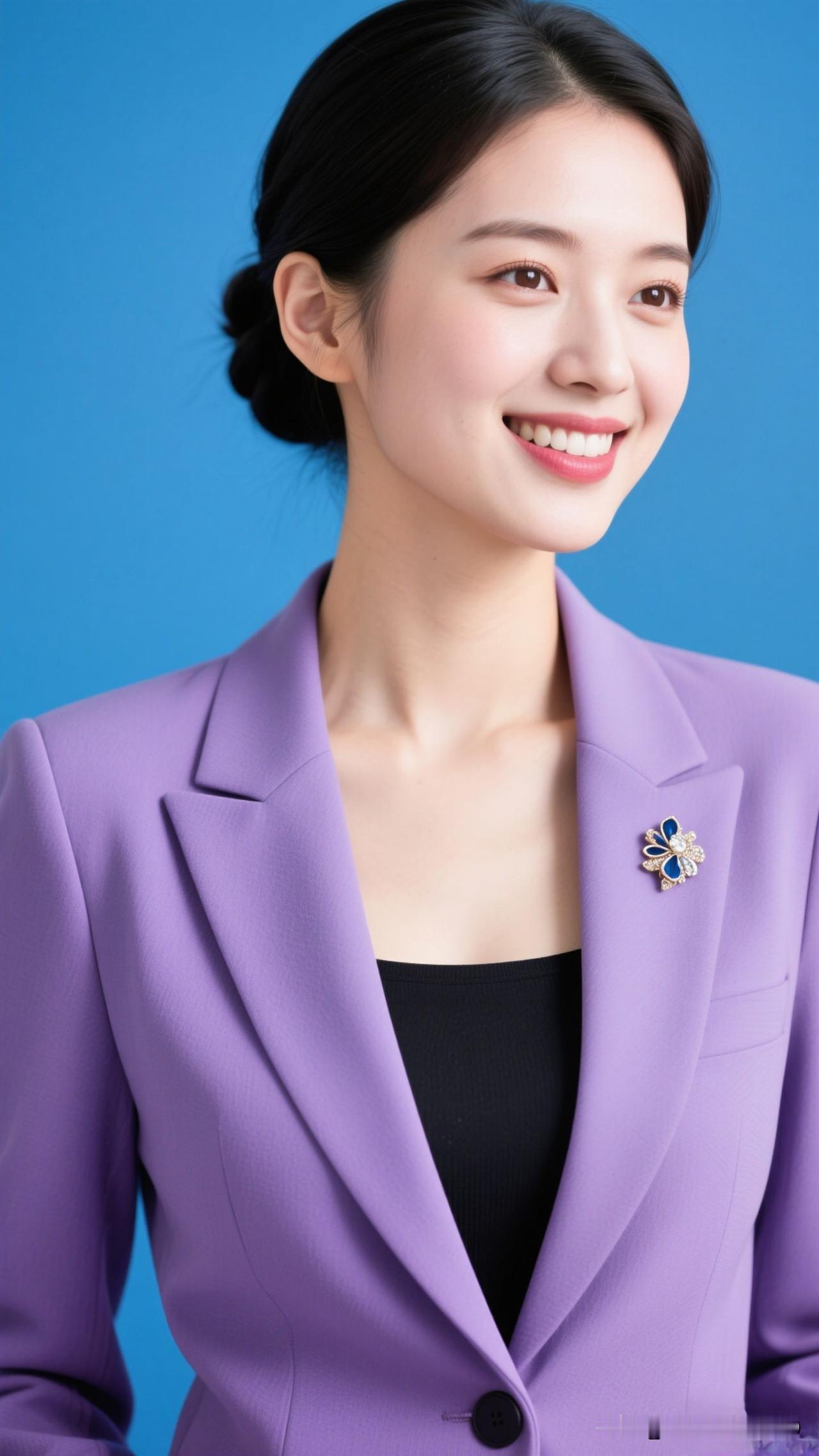 钴蓝为幕,紫衫是晕开的星云,胸针驮着银河的碎片,她站在那里,就是职场里发光的诗。紫蓝星夜 淡蓝紫色 浅蓝蓝 灰蓝紫 薰衣草紫蓝宝石