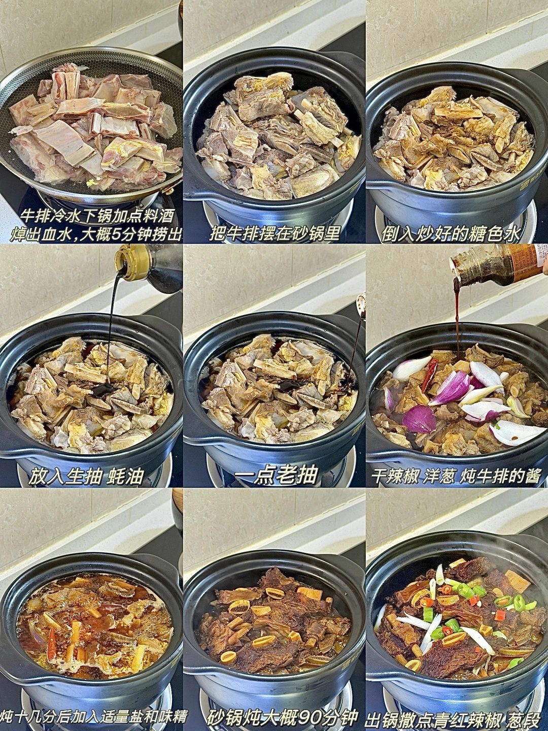 今日份美食分享:砂锅牛排 . 食材:牛排 做法如图上⬆️ . 香喷喷的砂锅红烧牛排 真的巨好吃😋 年夜饭露一手吧~