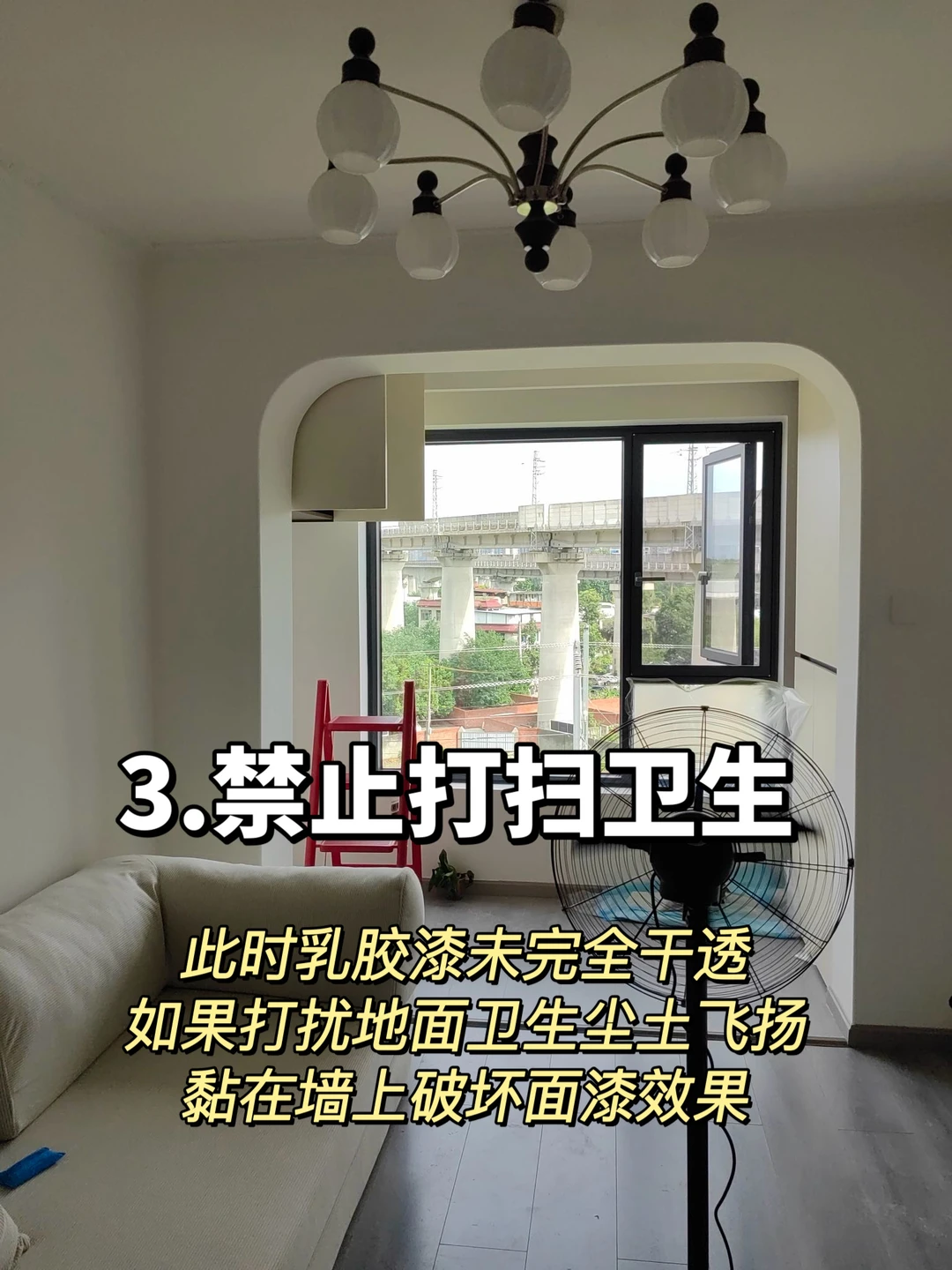 4️⃣ 刷完忌急通:刷完乳胶漆后关窗密闭养护5-7天,切勿立刻开窗通风,否则漆面表层快速干燥,遇冷收缩极易开裂