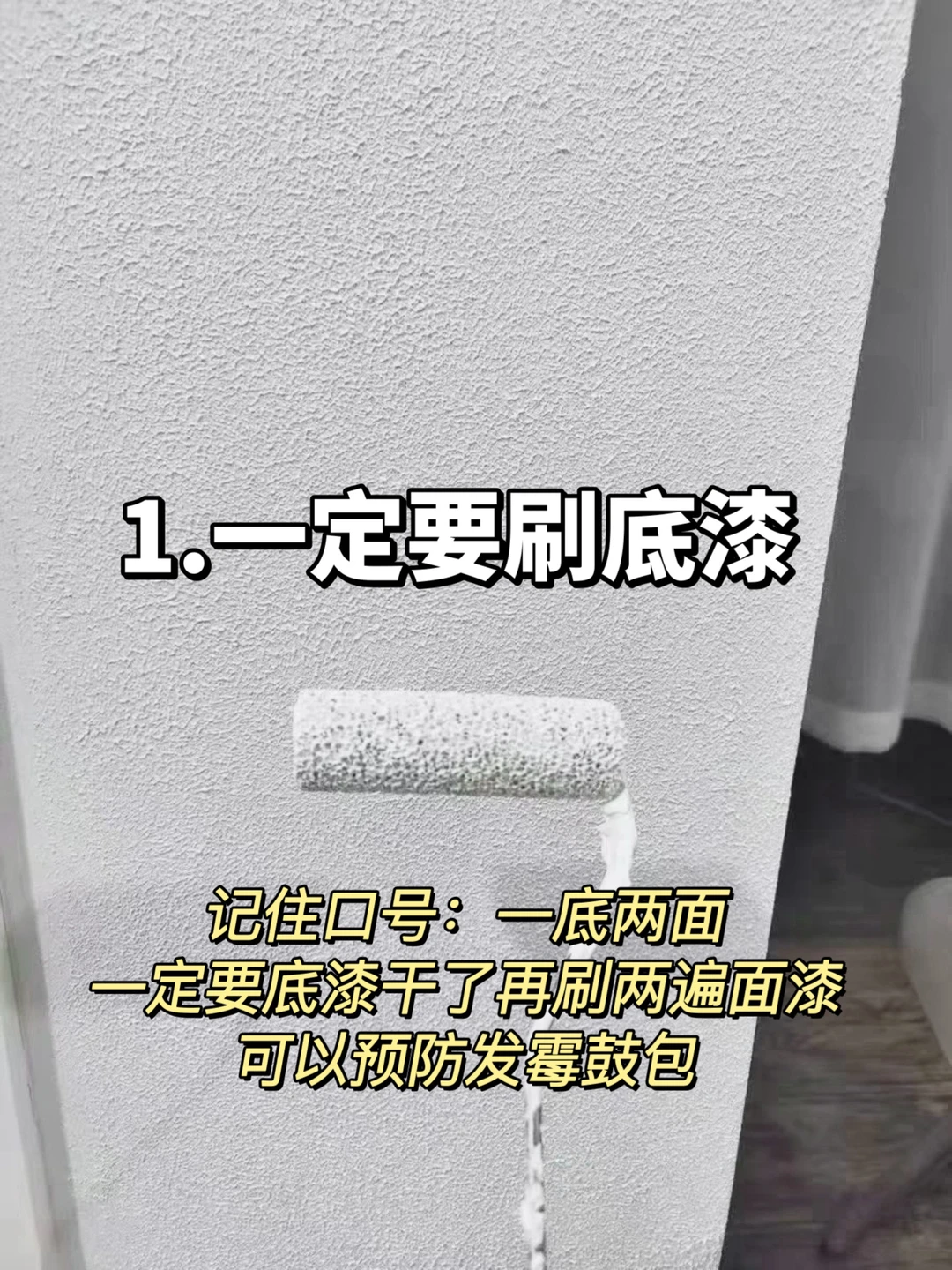 3️⃣ 底漆别省略:坚持“一底两面”施工法,底漆是墙面“防护层”,能有效封闭基层潮气、提升面漆附着力,从根源预防发霉、鼓包