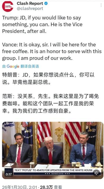 万斯遭遇耻辱一幕!特朗普:有话就说,毕竟你副总统 1月29日,特朗普召开了内阁在会议,在会上他确认了普京同意对乌克兰的能源设施停火一周,将在1月30日公布美联储主席人选。 万斯,这位近年来在美国政坛崭露头角的政治新星,此前凭借一系列大胆言论和独特政治主张,吸引了不少目光。他以强硬姿态示人,在诸多议题上毫不退缩,本以为在内阁会议上能继续展现风采,却没想到遭遇了意想不到的状况。 会议伊始,特朗普率先抛出重磅消息,确认普京同意对乌克兰能源设施停火一周。这一消息瞬间让会议室气氛变得紧张又微妙,毕竟俄乌冲突一直是国际社会关注的焦点,美国在其中扮演的角色也备受争议。特朗普此举,无疑是在向外界释放某种信号,试图在国际事务中展现美国的“影响力”。 紧接着,特朗普话锋一转,提及1月30日将公布美联储主席人选。这一话题同样敏感,美联储主席的决策直接影响着美国乃至全球的经济走向,谁将接任这一要职,自然引发众人猜测。 特朗普此时抛出这一消息,无疑是想将内阁成员的注意力从俄乌冲突上部分转移,同时也为后续的会议讨论埋下伏笔。 就在众人聚焦于这两个重要议题时,万斯却陷入了尴尬境地。或许是急于表达自己对国际局势的看法,又或许是想在美联储主席人选问题上展现自己的见解,万斯在发言时显得有些急切。 可他的发言并未得到特朗普的积极回应,特朗普只是淡淡地看了他一眼,随后抛出一句“有话就说,毕竟你副总统”。 这看似平常的一句话,却让现场气氛瞬间凝固。万斯的脸色微微一变,显然没想到会得到这样的回应。在场的内阁成员们也都面面相觑,不知道该如何打破这尴尬的局面。这一场景被媒体捕捉到后,迅速在网络上传播开来,引发了外界的诸多猜测。 有人认为,这是特朗普对万斯的一种敲打。万斯近年来在政坛的崛起速度较快,其政治主张有时与特朗普并非完全一致。 特朗普或许是想通过这种方式,提醒万斯要认清自己的位置,不要过于张扬。毕竟,在特朗普的团队中,忠诚和服从一直是他看重的品质。 也有人觉得,这可能只是会议中的一个小意外。特朗普性格直爽,说话有时不拘小节,或许并没有其他深意。而万斯可能只是因为过于紧张,导致发言表现不佳,才会引发这样的反应。但无论如何,这一场景都成为了当天会议的“意外亮点”,让原本严肃的会议增添了几分戏剧性。 从更深层次来看,这一事件也反映出美国政坛内部的复杂关系。在权力斗争激烈的政治舞台上,每一个细微的举动都可能被解读出不同的含义。 万斯作为副总统,本应在内阁中拥有重要话语权,可此次遭遇的“冷遇”,却让人不禁对他的政治前途产生疑问。他能否在特朗普的团队中继续站稳脚跟,又能否在未来的政治生涯中实现自己的抱负,都成了未知数。 而特朗普公布的两项重要消息,也并非孤立存在。俄乌冲突停火一周的背后,是美国在国际事务中不断调整策略的体现。 美国一方面试图通过军事援助等方式支持乌克兰,另一方面又不想与俄罗斯彻底闹僵,以免引发更大的国际危机。此次停火协议的达成,或许是美国在权衡利弊后做出的妥协。 至于美联储主席人选,更是牵动着美国经济的神经。不同的人选可能带来不同的货币政策走向,进而影响股市、就业等多个领域。特朗普选择在这个时候公布这一消息,无疑是想在经济领域掌握更多主动权,为自己的政治目标服务。 那么,对于这件事,大家有什么看法?欢迎大家在评论区进行讨论。