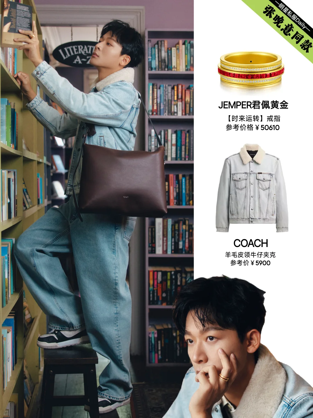 张晚意×「精彩OK」开年刊封面,一组悉尼街角书店的牛仔造型梦回90年代,复古又慵懒的松弛氛围,十分惬意~这组造型简约复古,帅气无比,指尖佩戴的JEMPER君佩黄金的【时来运转】戒指更是点睛之笔,黄金底托镶嵌了一圈可转动的红宝石,奢华又贵气,可转动的独特的设计也蕴藏着时来运转的美好寓意,在开年刊里佩戴也太会选了~ 不得不说现在黄金的风是越来越大了,很多明星在日常配饰上都选了黄金配饰,君佩这款戒指也被很多明星艺人pick过了~