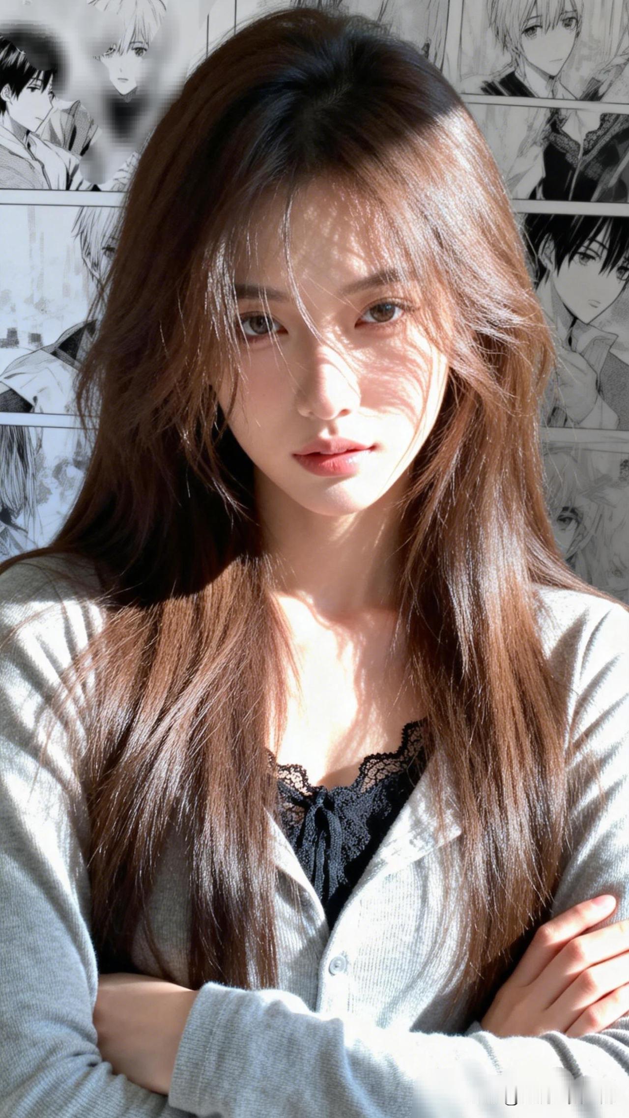 日系少女风,黑白漫画背景,甜美气质满满。纯天然美女长啥样子