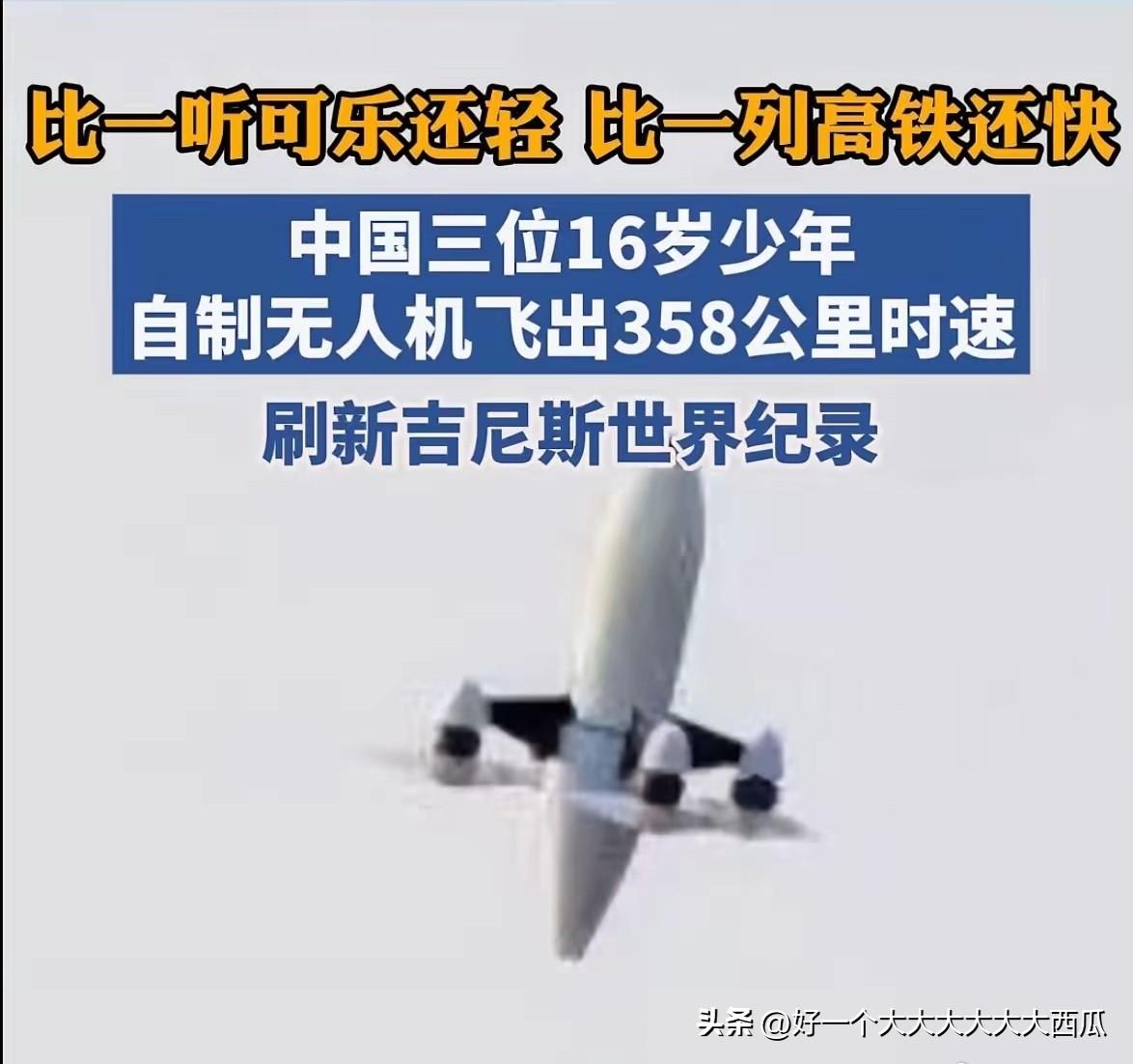 少年强则国强, 这是我看到这三位16岁少年冒出的第一个想法。 接着更想到我国的科研制造领域为什么最近这十多二十年这么迅猛, 其实是有这样一批批的青年才俊涌现出来, 做无人机的其实都清楚, 这个东西在自制的情况下要达到如此高的速度有多难, 对于高中生年纪的孩子来说, 他们需要学习掌握的物理和工程知识又需要积累多少才能达到