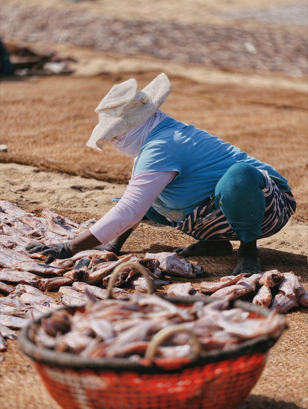 市场里的人大多低头忙碌。整理鱼获、翻晒鱼干、应付熟客的讨价还价,动作熟练而自然,像是身体早已习惯了与海一起工作的节奏。