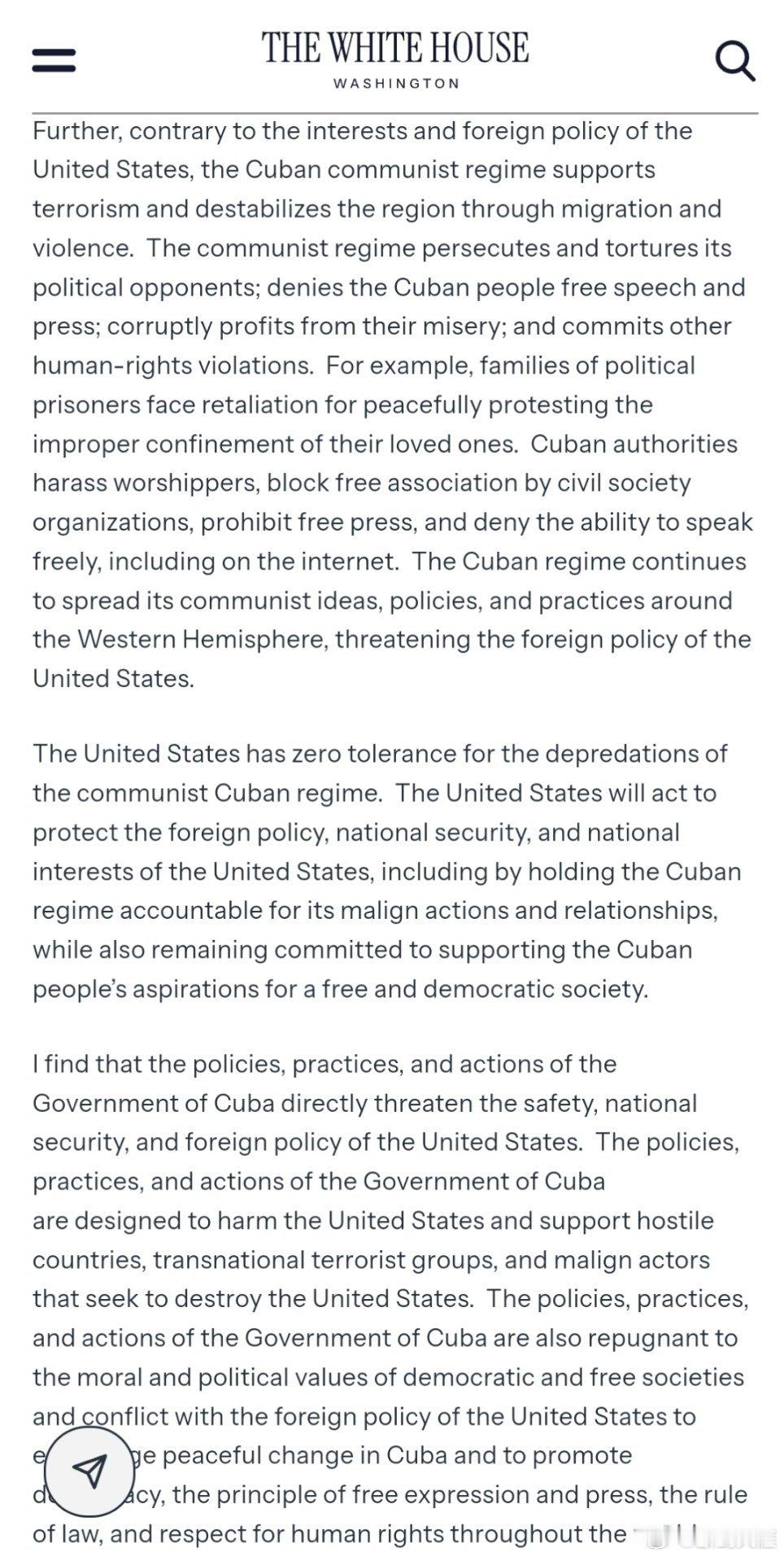 应对古巴政府对美国构成的威胁