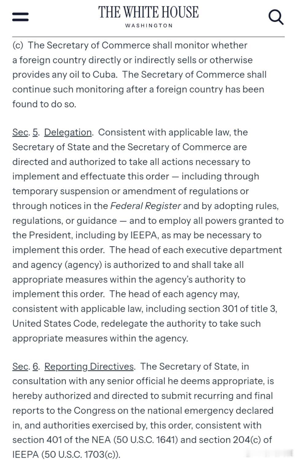 依据宪法及美国联邦法律赋予我的总统职权,包括《国际紧急经济权力法》(50 美国法典第 1701 节及后续章节)(IEEPA)、《国家紧急状态法》(50 美国法典第 1601 节及后续章节)(NEA)以及《美国法典》第 3 卷第 3 节