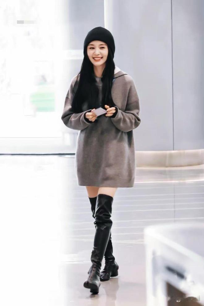 王子文留回长发也太惊艳了!一袭卫衣连衣裙搭配长筒靴,减龄又时髦,还特别显高,氛围感拉满~
