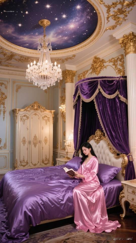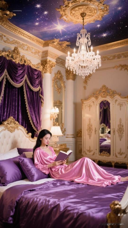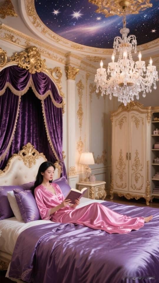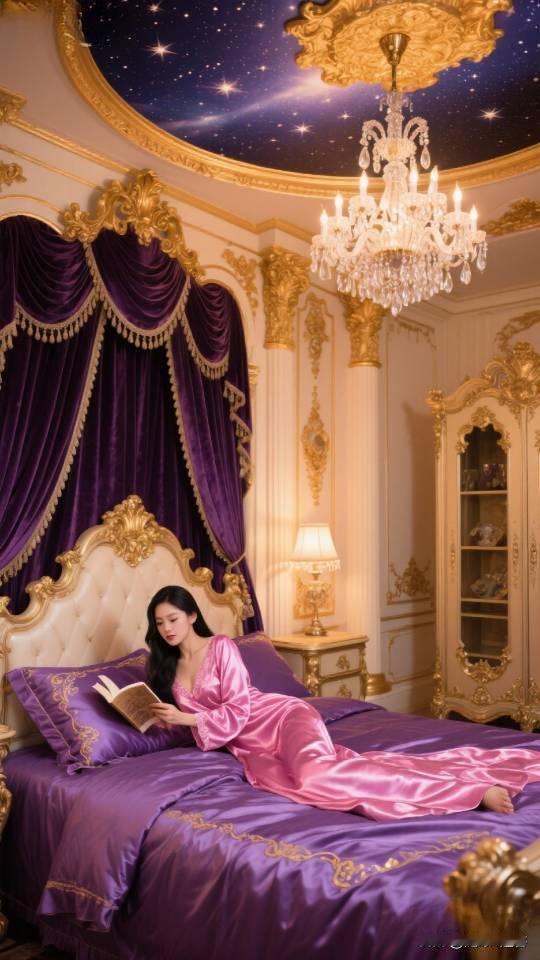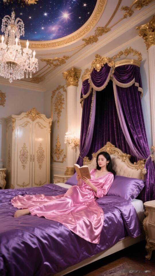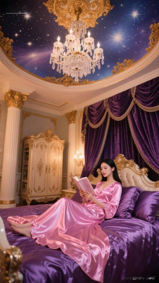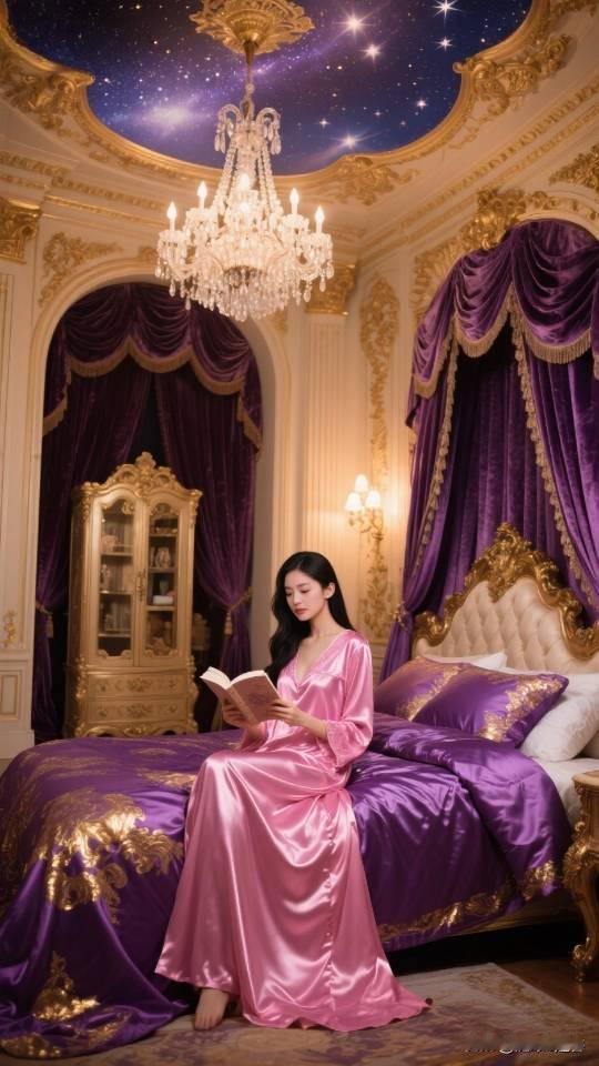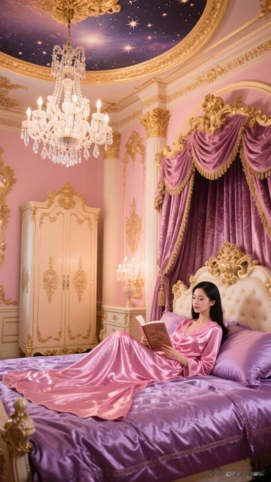 身穿粉红家居服的女子在看书。家居服 美女图片