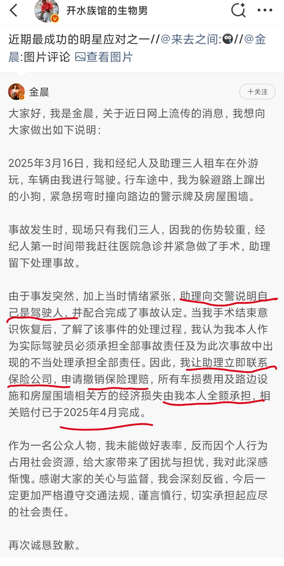 #金晨助理顶包或被拘留罚款##金晨道歉# 金晨为此次事件道歉,警方通报了,大家可以自己看看。