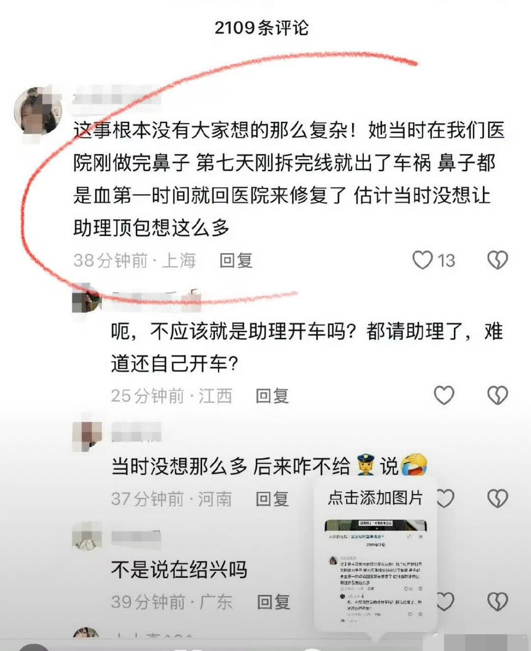 原来这才是真相, 金晨不是逃逸,也不是故意让助理顶包,更不是紧张得不知道该咋办了, 她是因为刚整的鼻子快歪了! 知情人透露,金晨车子事故不严重,但当时金晨刚做了鼻子,第七天拆完线就出事故了,一脸血。 对于一个明星来说,脸就是命呀,金晨肯定紧张,反正是单车事故,也没有其他人员受伤,最好的处理就是让金晨赶紧就医。 出事半个月后,金晨再露面就有人说她的样子不一样了,跟事故时间也对上了。 这么一看,金晨的处理没有错,也没让保险赔,都是自己掏的钱。 过去大半年又被翻出来,也真是倒霉。
