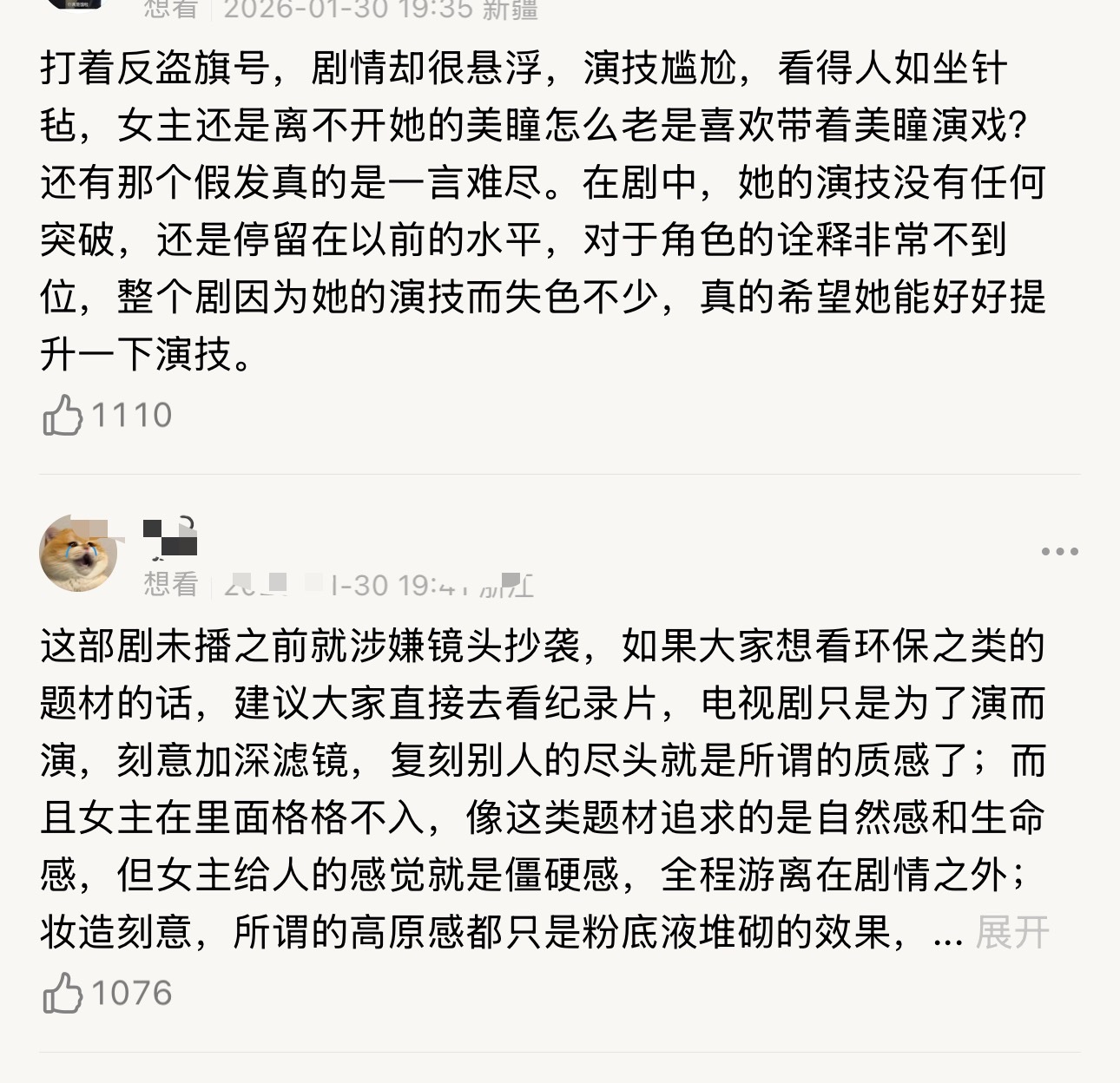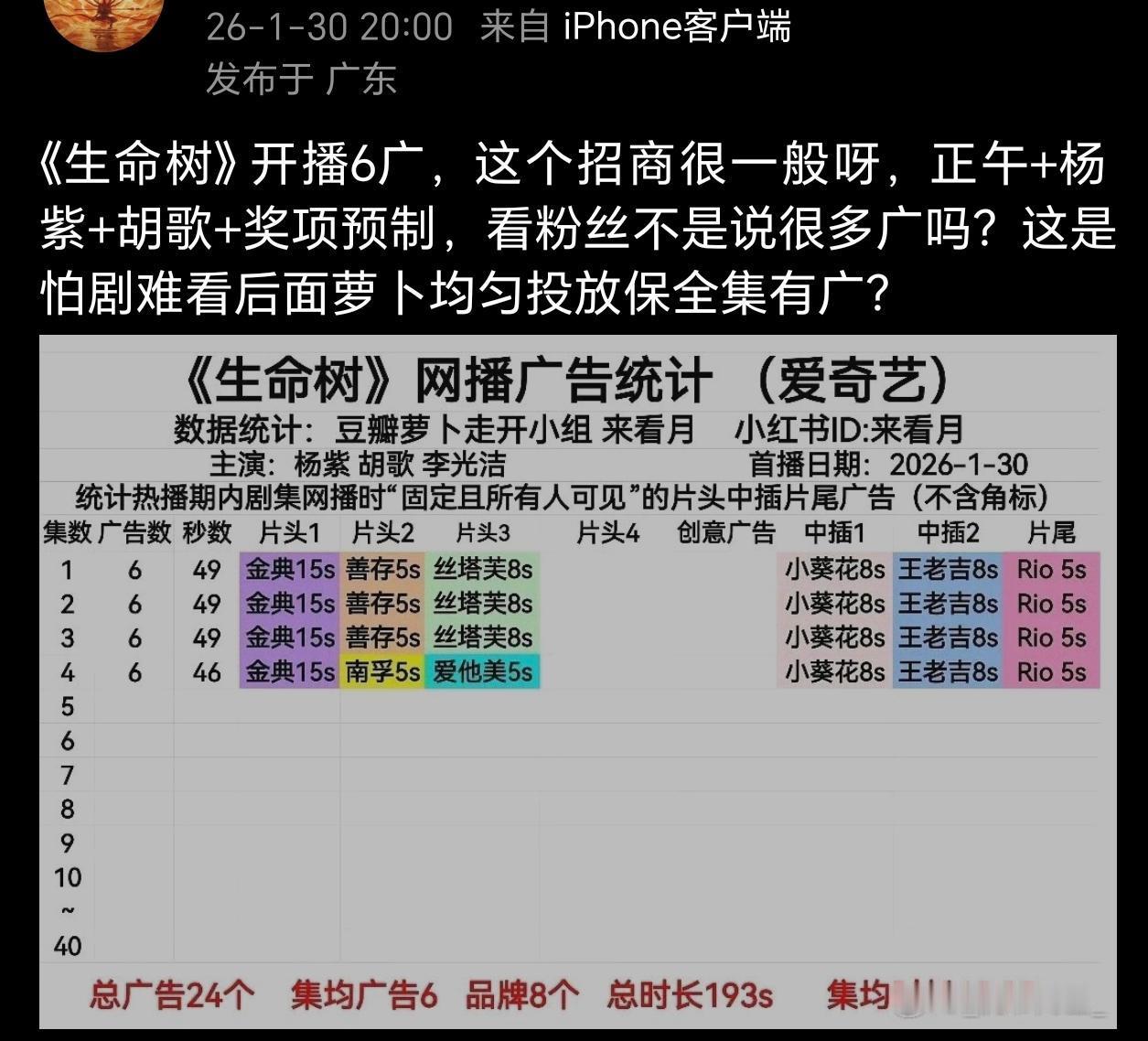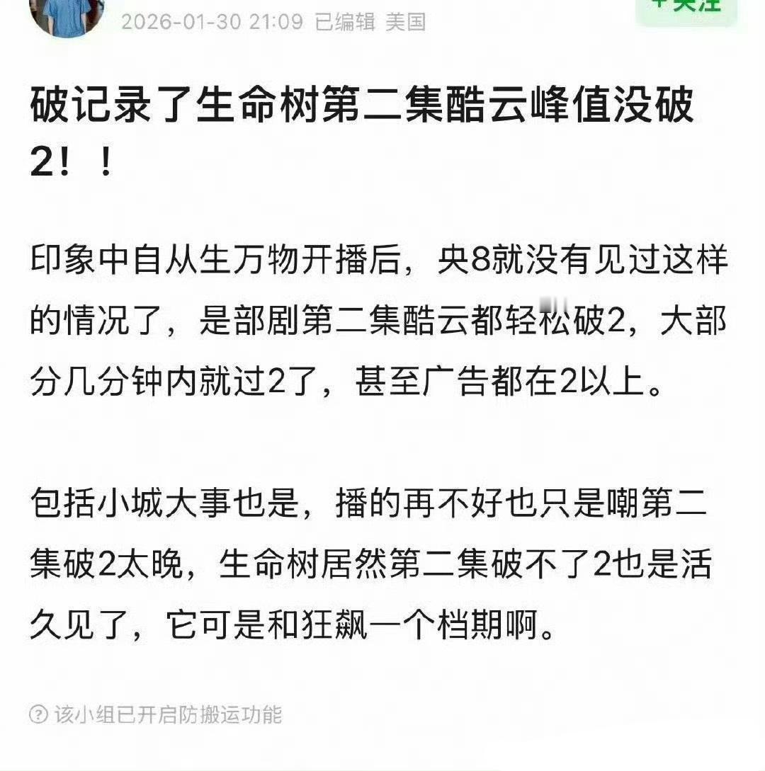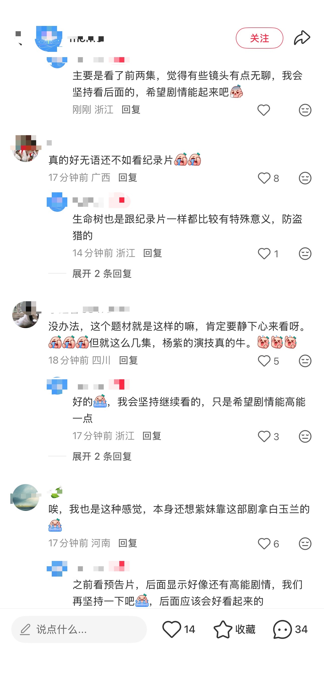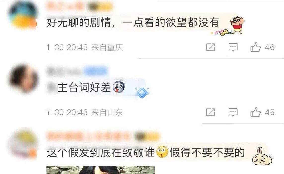 生命树首波反馈:好多网友表示剧情很散很无聊不接地气,不如去看纪录片,主演台词差假发很假等。