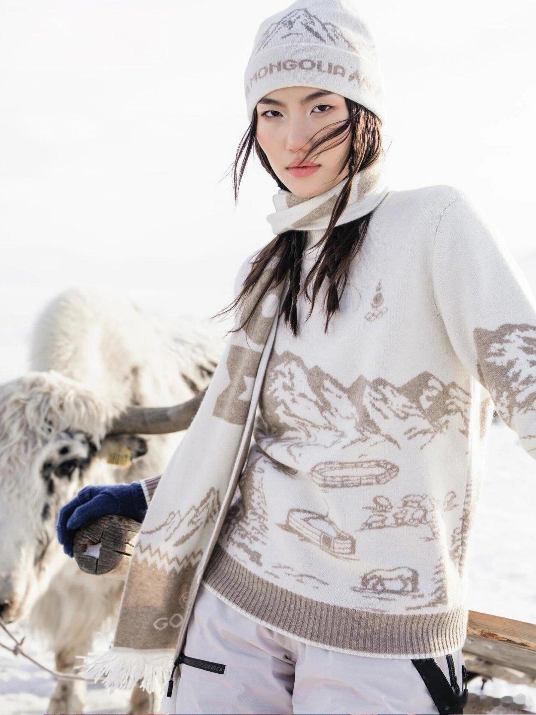 对蒙古而言,喀什米尔羊绒从来不只是昂贵的材质,而是游牧民族世代用来抵御严冬的生活必需品。将其作为主要材料,既是对传统的延续,也让这些古老工艺在当代运动场合中再次焕发生机,让更多人看到蒙古文化的独特魅力。