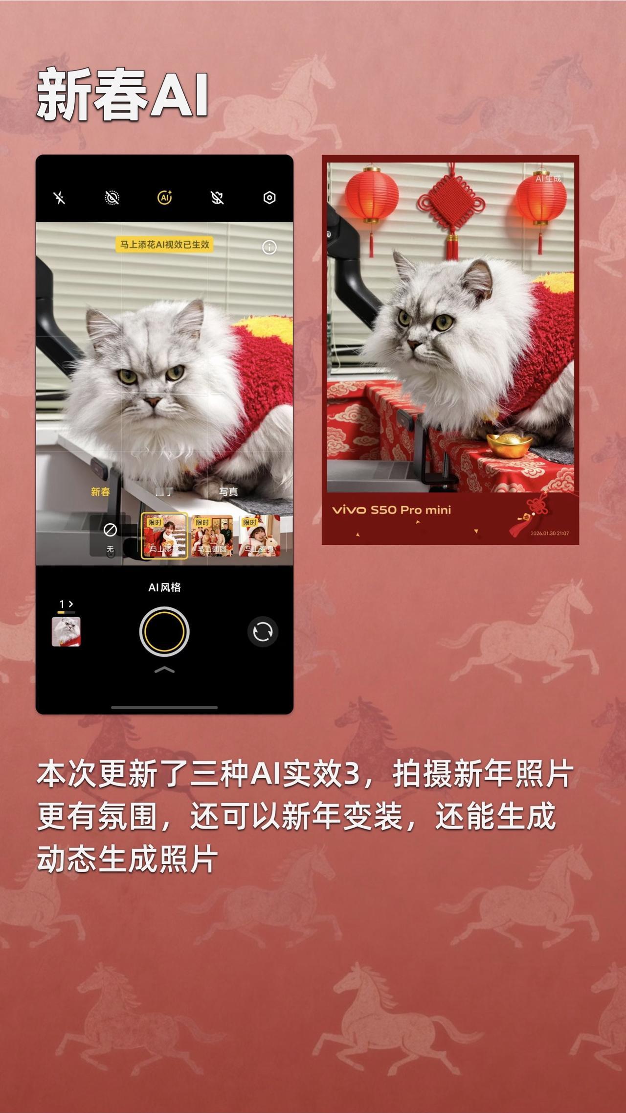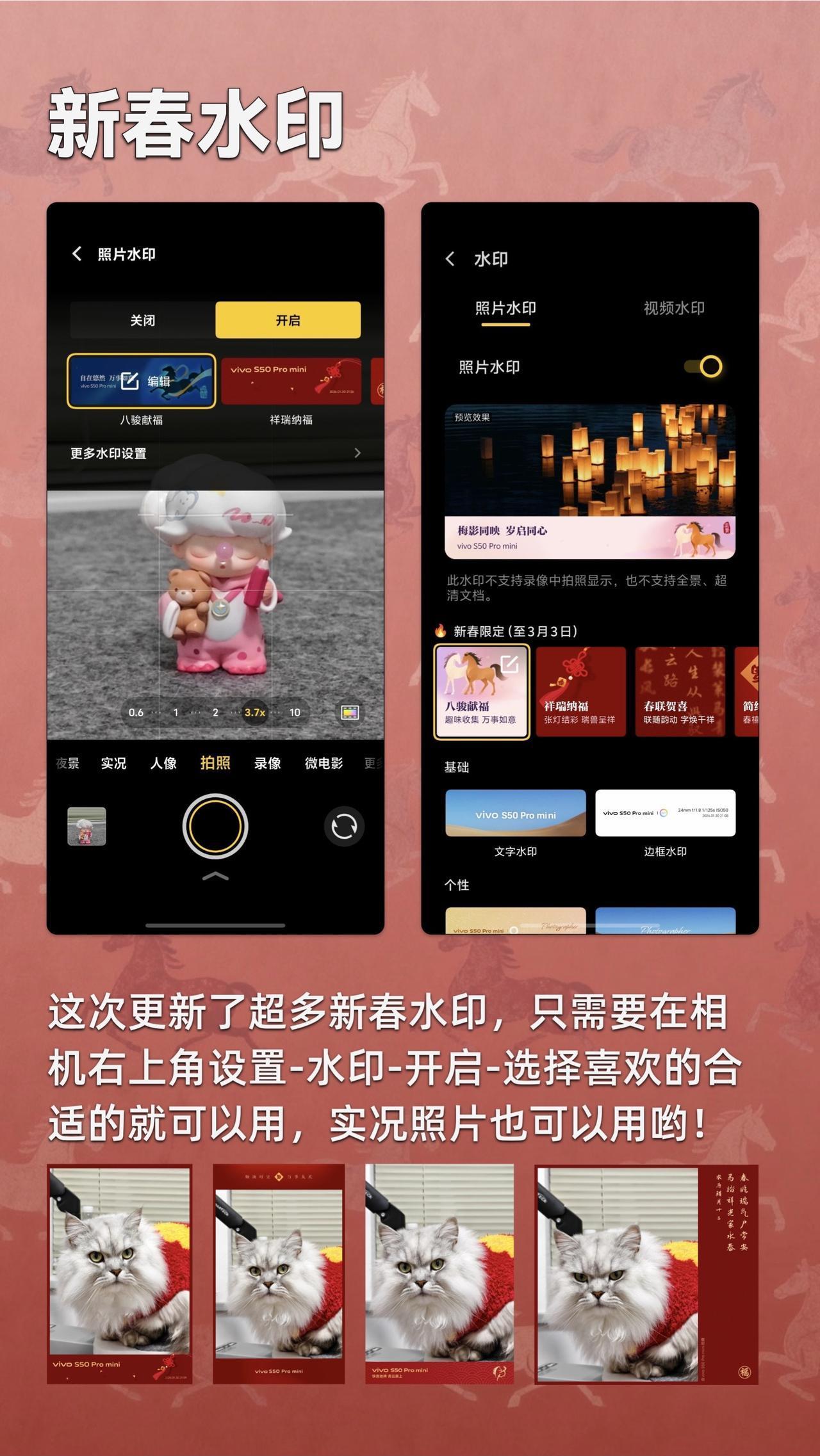 vivo S50 Pro mini最近更新完有了超多新春水印和AI特效 竟然还有一个需要拍几张照片才能解锁的水印,仪式感拉满 三款新春AI时效,拍新春装扮,拍新春氛围照,拍全家福都超级好用! vivoS50Promini vivoS50 vivo年货节 手机数码