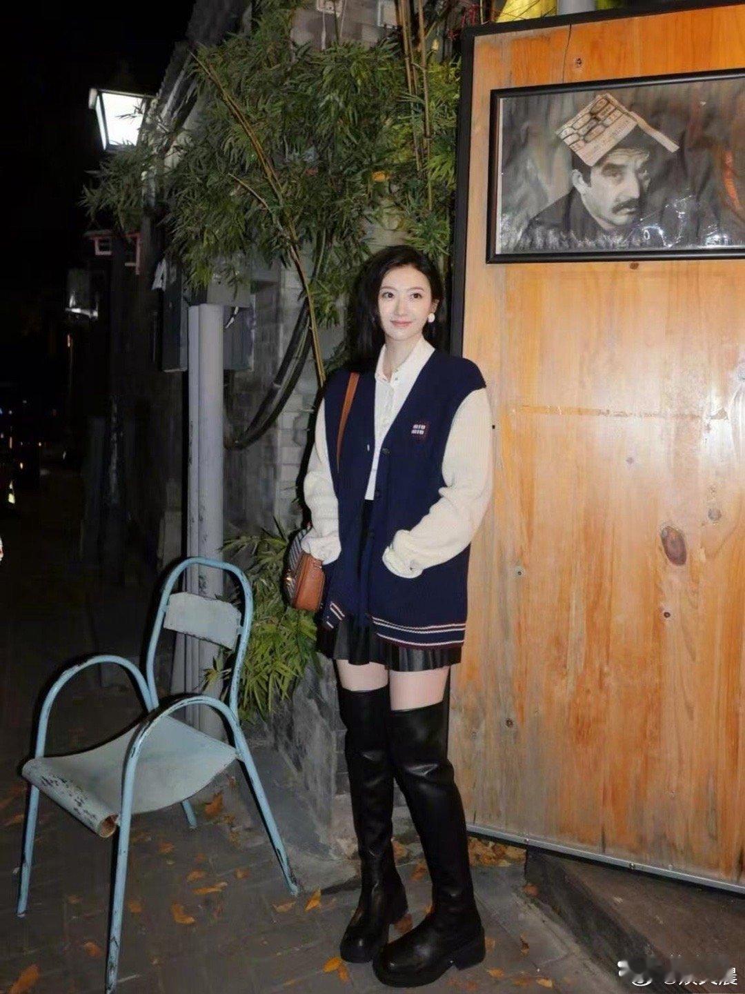 景甜的私服搭配也太会了吧!针织衫配短裙加长筒靴,整套造型甜度拉满超减龄,看着完全就是十八岁少女既视感~