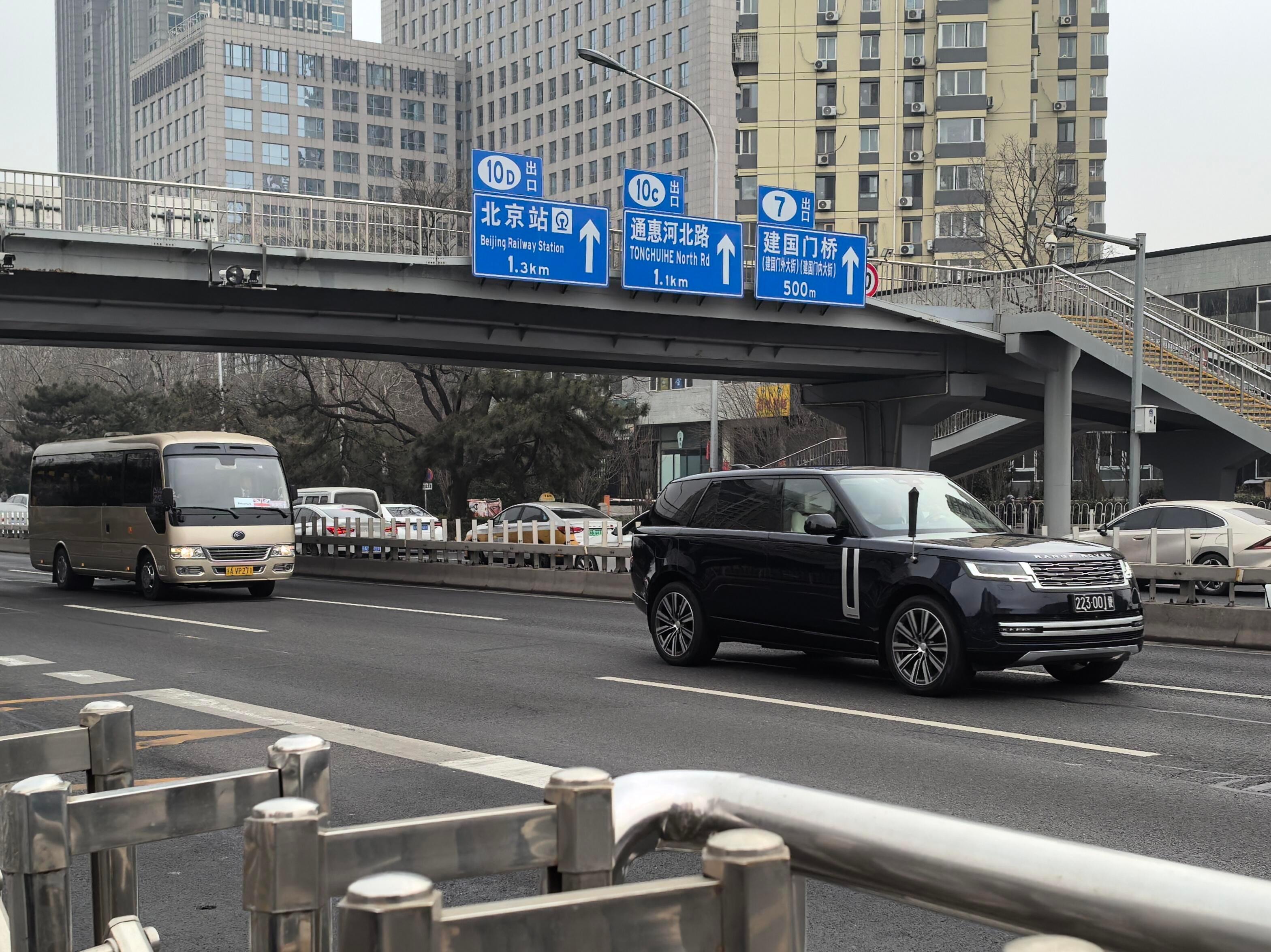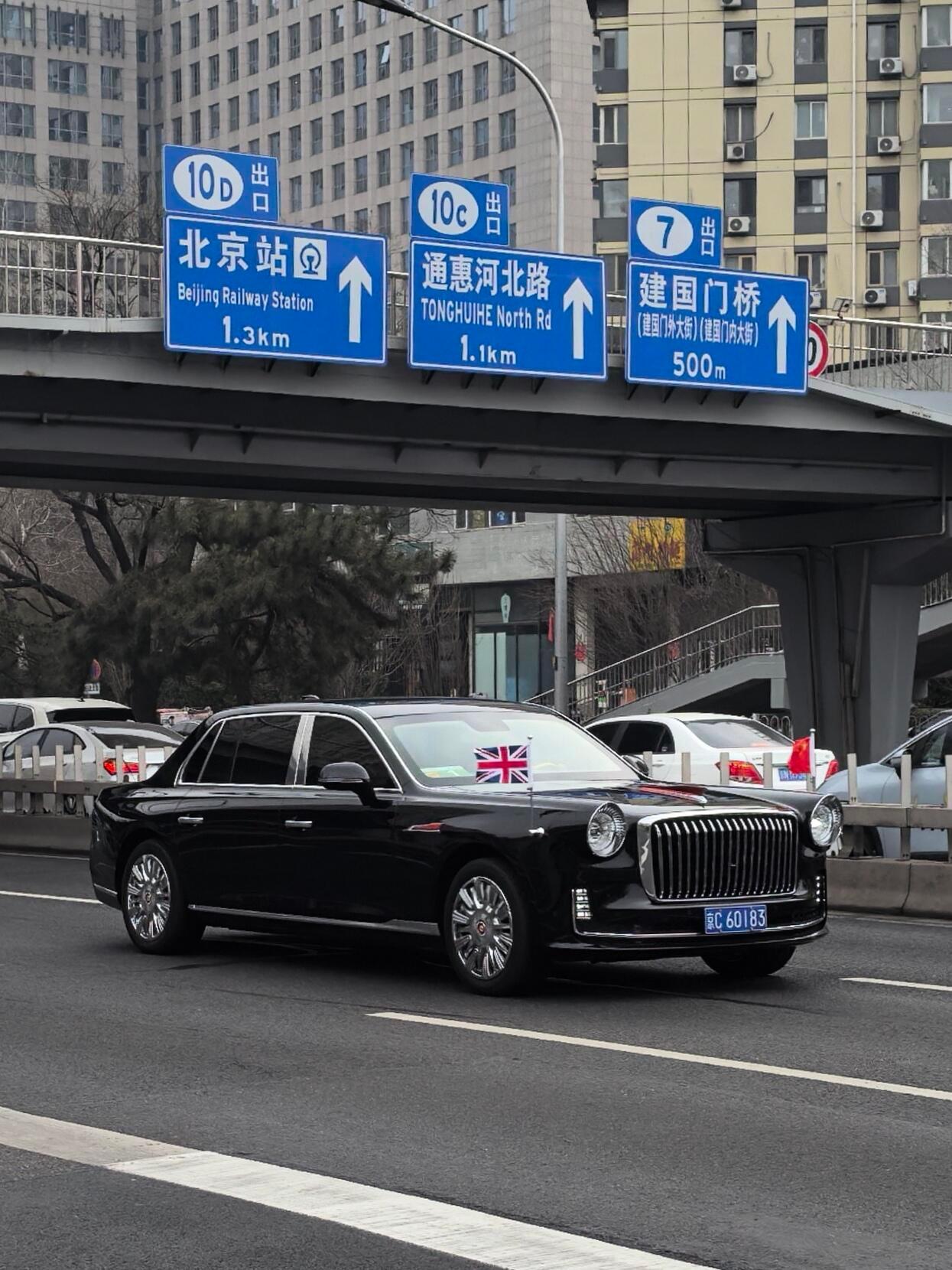 后面跟着的英国大使馆001号加长大揽气场稍微差一点