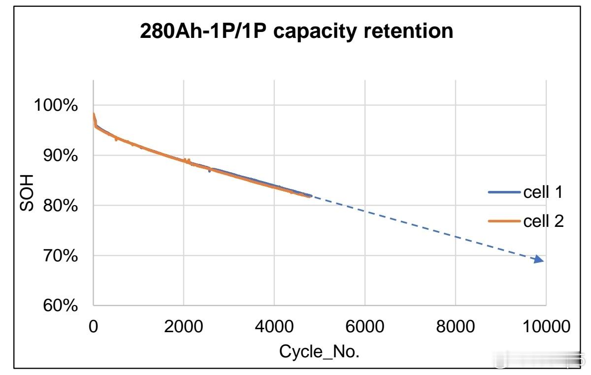 磷酸铁锂电池,前200次循环衰减是最快的,一个6000次循环soh>80%的电芯,一般循环1700周后soh就会到90%左右。
