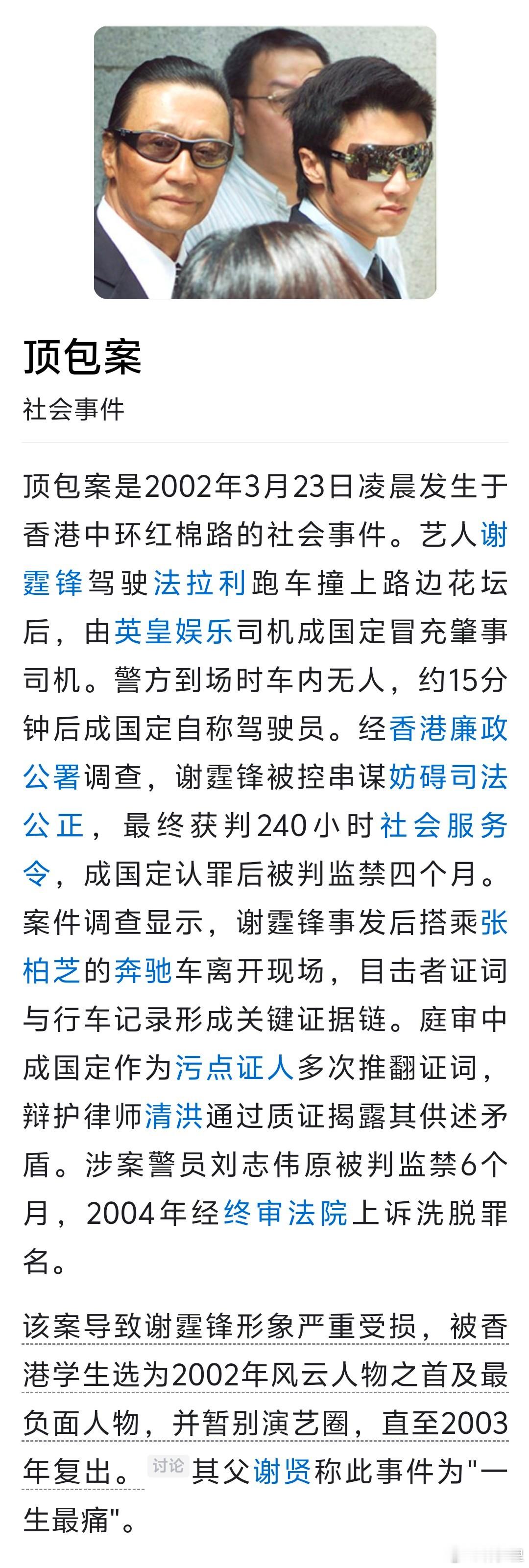 话说,交通事故的顶包案,当年谢霆锋经历过。