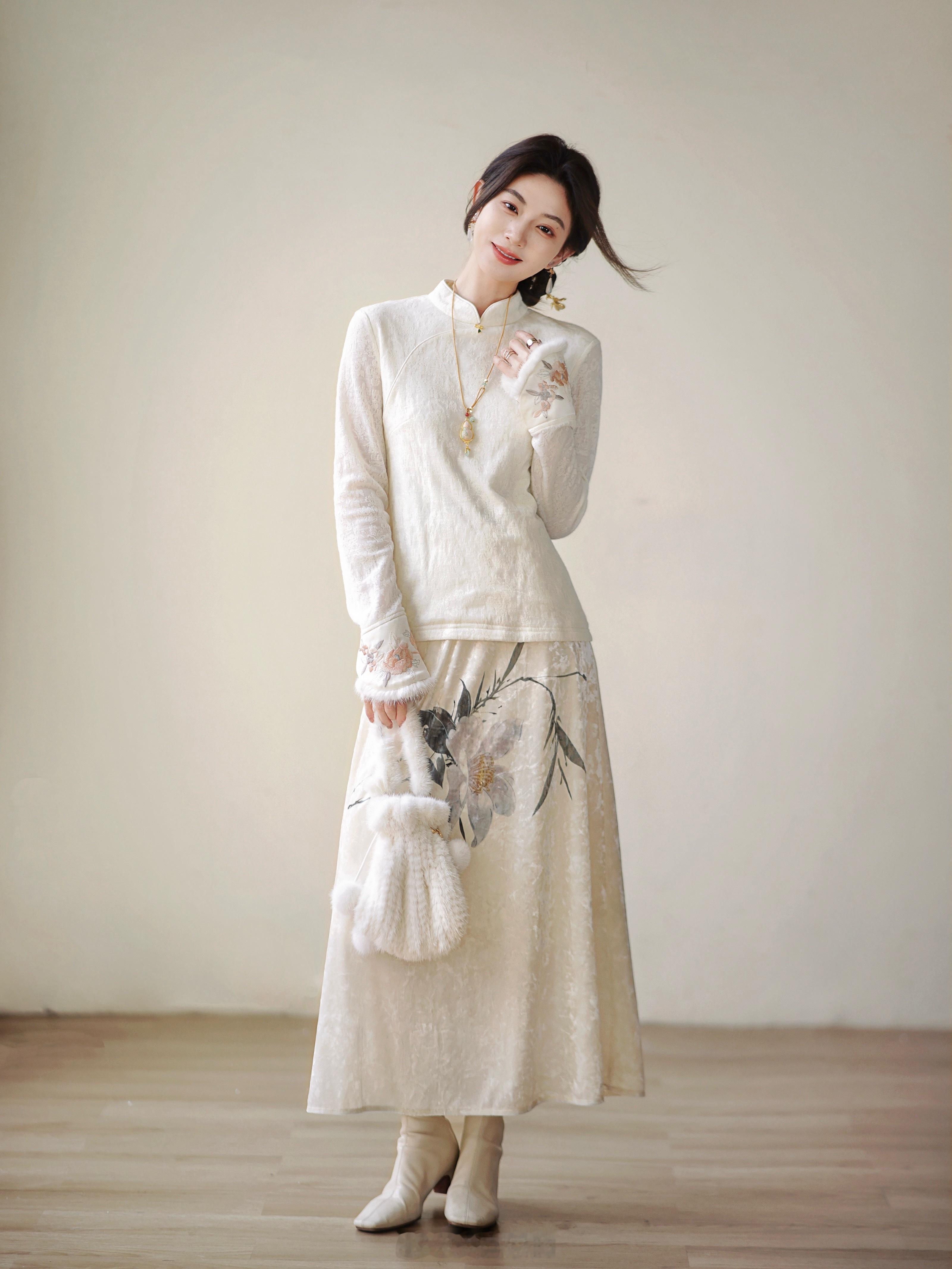 国风的美夸一万遍都不够!醋酸羊毛/填充90鸭绒 再有水貂毛点缀轻暖温柔贵气 袖口提花更美绝了啊~