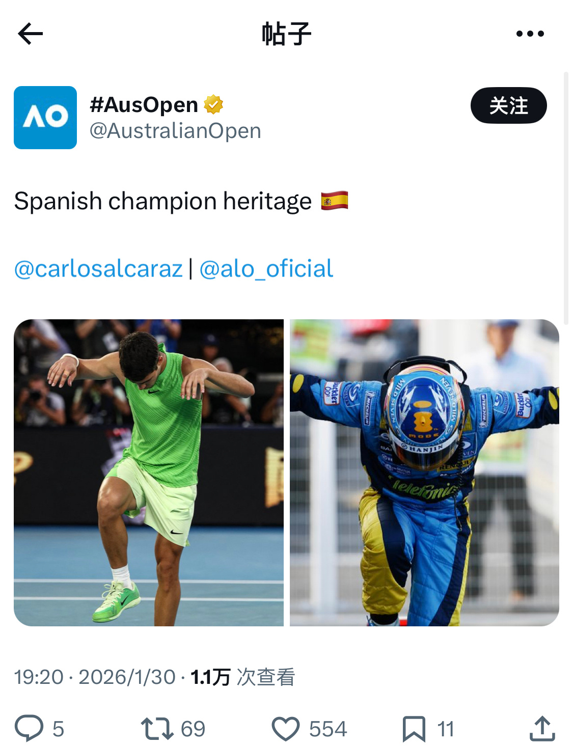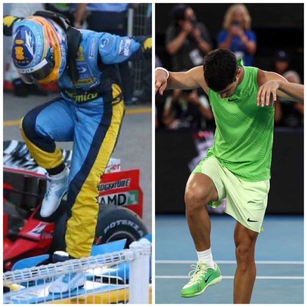 阿尔卡拉斯首进澳网男单决赛不多说了!就Hala Madrid吧阿卡进决赛后,做了头哥标志性动作!澳网2026|F1