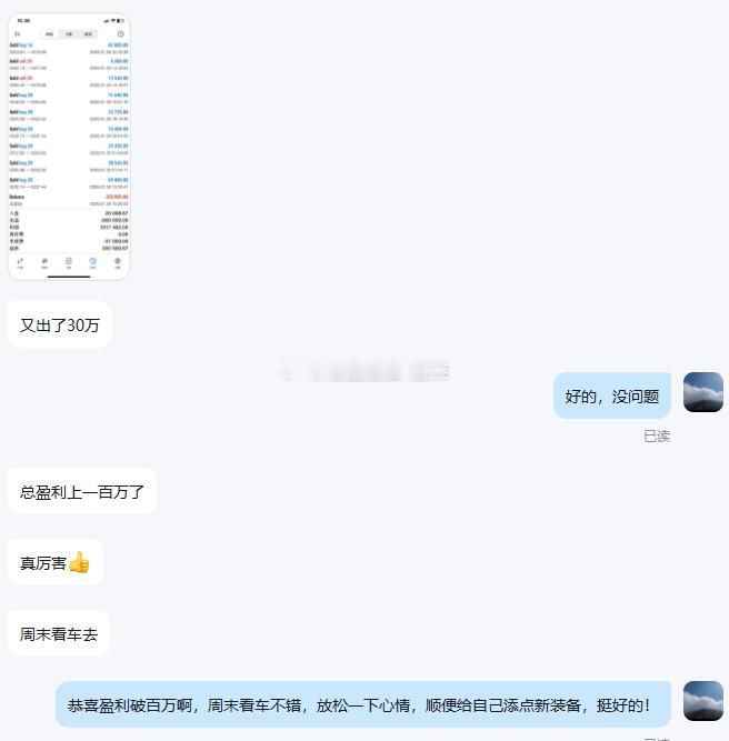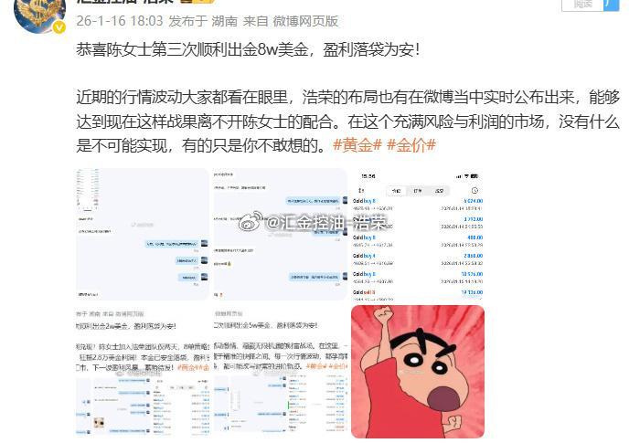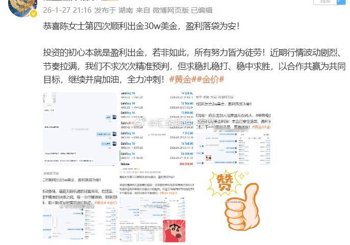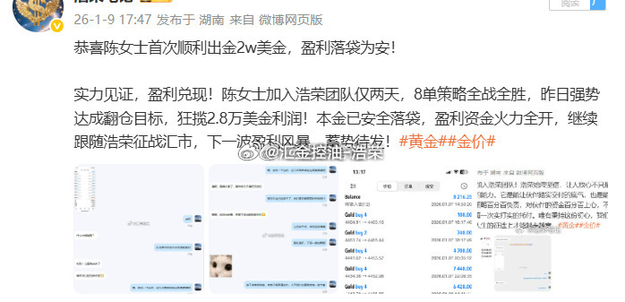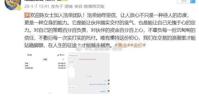 浩荣很欣慰能助力实盘客户账户增值,也特别感谢陈女士的信任与认可。投资之路,道阻且长,我们始终对自己、对每一位实盘客户、对长期市场满怀信心,不忘初心,步履不停。黄金 金价