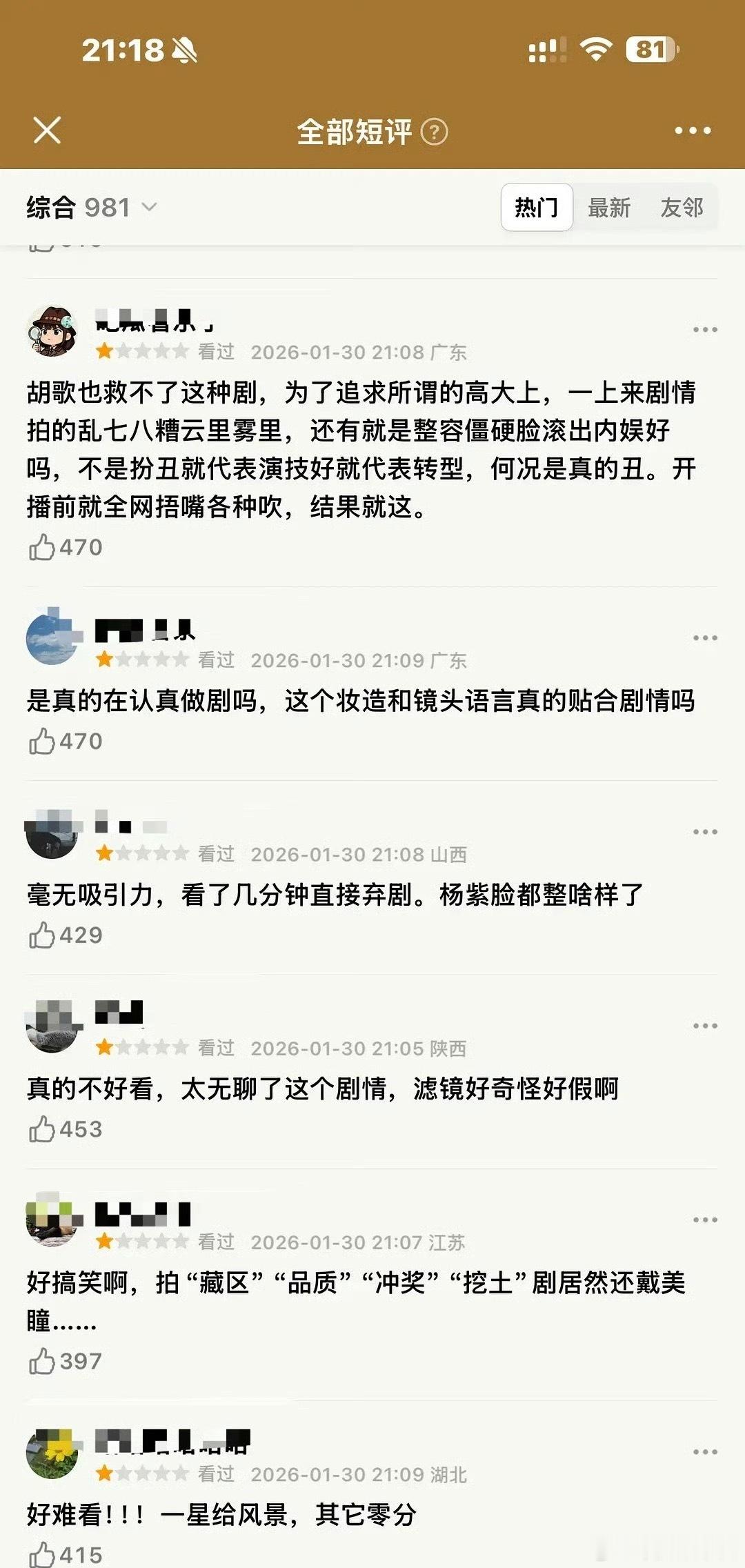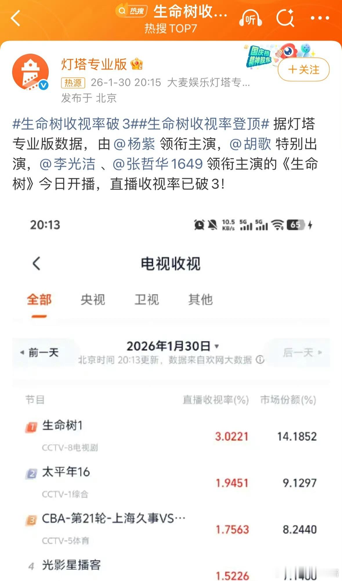 杨紫、胡歌《生命树》收视率破3了,但是db评分基本都是一🌟,到底是扑了还是爆了