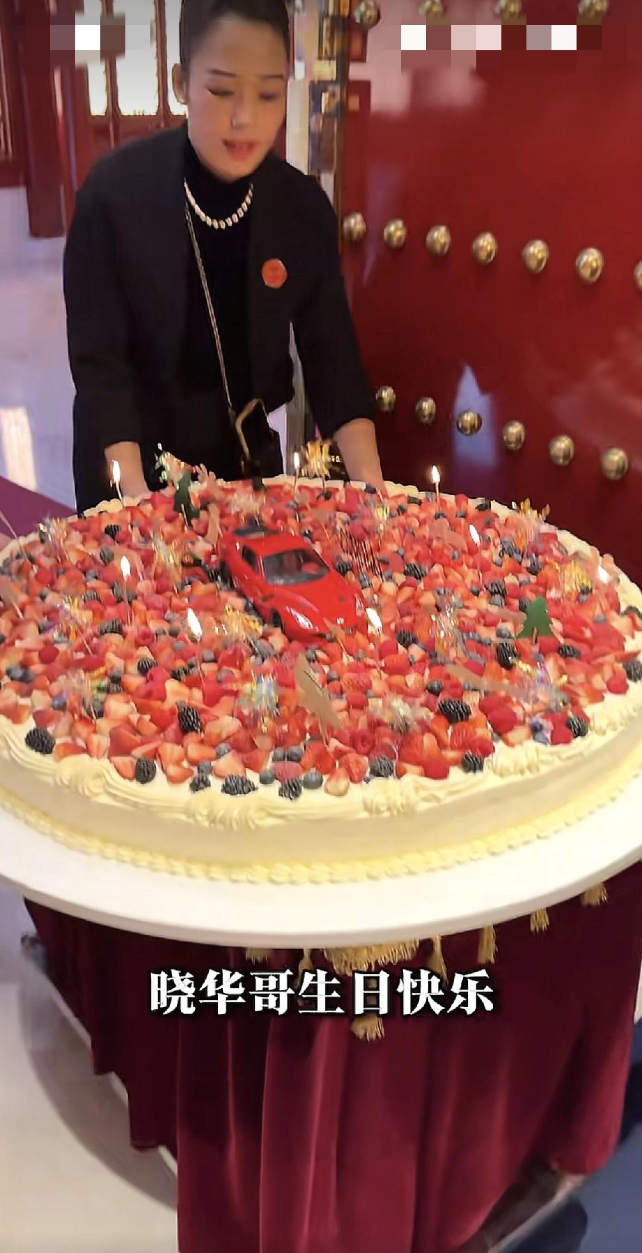 中国法拉利第1人李晓华过生日,真豪气,连85岁的杨洪基都要献唱! 近日,中国法拉利第1人李晓华在北京一家高端饭店,为自己庆贺75岁生日。 向来喜欢高调奢华的他,这一次饭店选得非常漂亮,环境很好,他请了好多明星大咖前来一起庆祝。 其中有唐国强、于荣光、斯琴高娃、杨洪基,斯琴高娃身体舒服,腿脚不灵便,不好意思拄拐杖,拄了一把伞过来了。 杨洪基已经85岁了,也是特别老的一位长辈了,但还是过来了,并且在餐桌上献唱,唱歌的时候,他就坐在李晓华的身旁。 由此可见,李晓华的面子是非常大的,没想到从来不混娱乐圈的他,竟然交到这么多娱乐圈的大咖。 李晓华在1992年的时候买了中国第1辆红色法拉利跑车,车牌是京A00001,因此他被称为中国法拉利第1人,那时没有人能买得起法拉利,而他却买得起,说明那时候的经济已经开始快速增长了。 李晓华是第1批下海经商赚到钱的人,因此他能买得起法拉利。 如今30多年过去了,李晓华还是大富豪一枚,只是年龄大了一点,今年75岁了,但并不影响他继续奢华生活。 他的生日宴会好欢乐,来了这么多大咖庆祝,让网友们见识了什么叫做娱乐圈的顶级聚会。 就连蛋糕都做得那么高级,很多草莓中间包裹着一辆红色的法拉利,财富自由的感觉可真好!