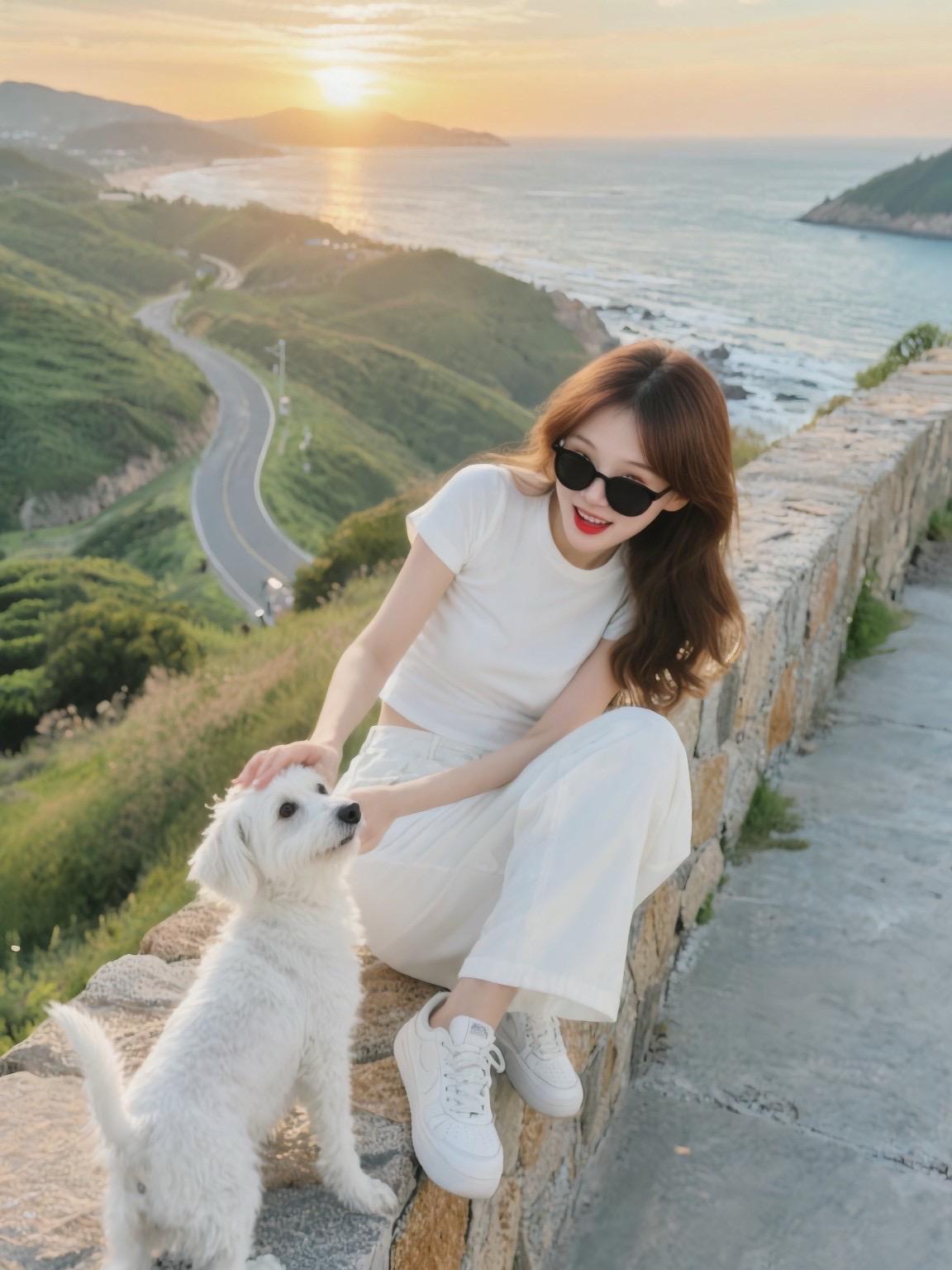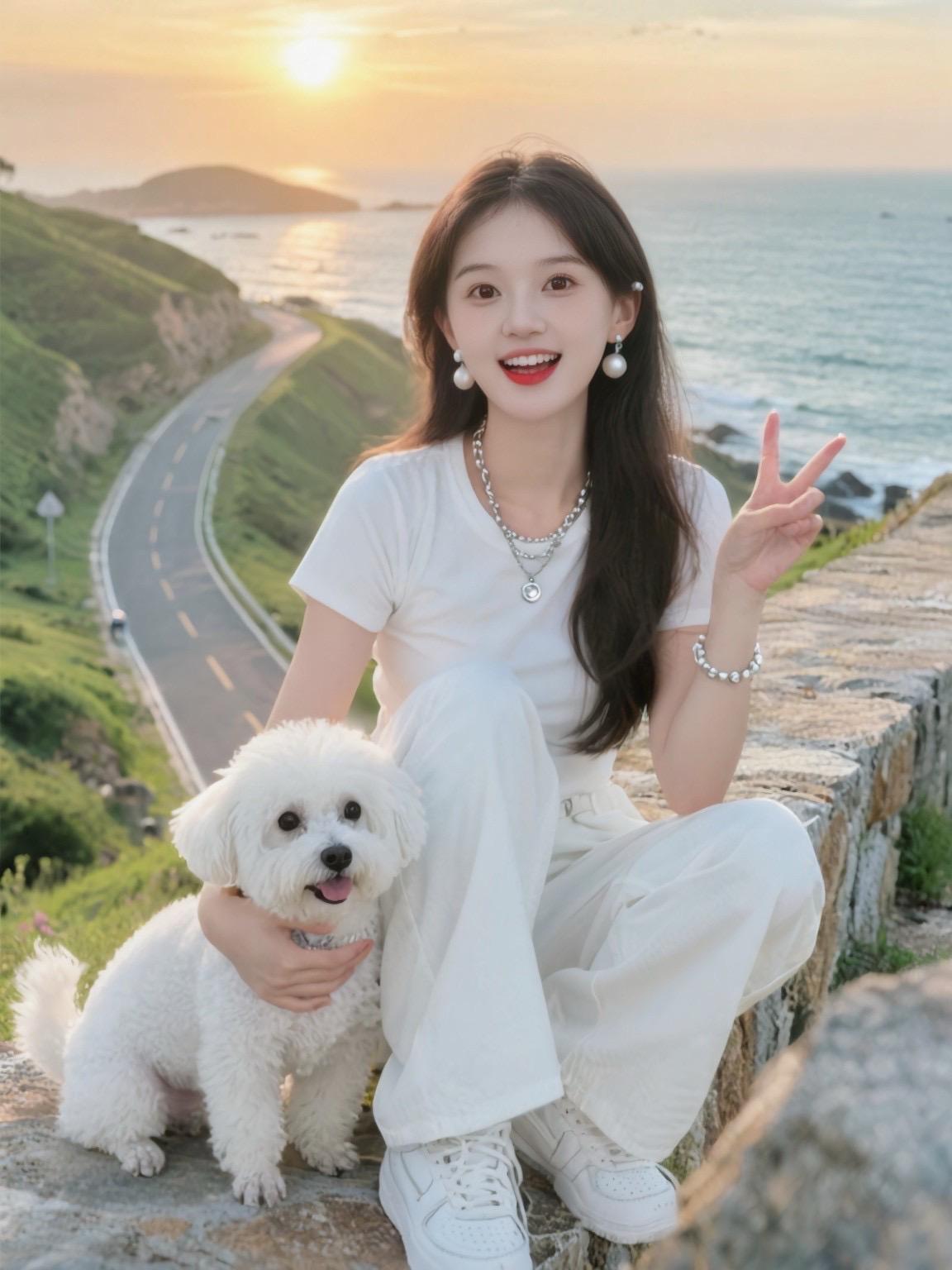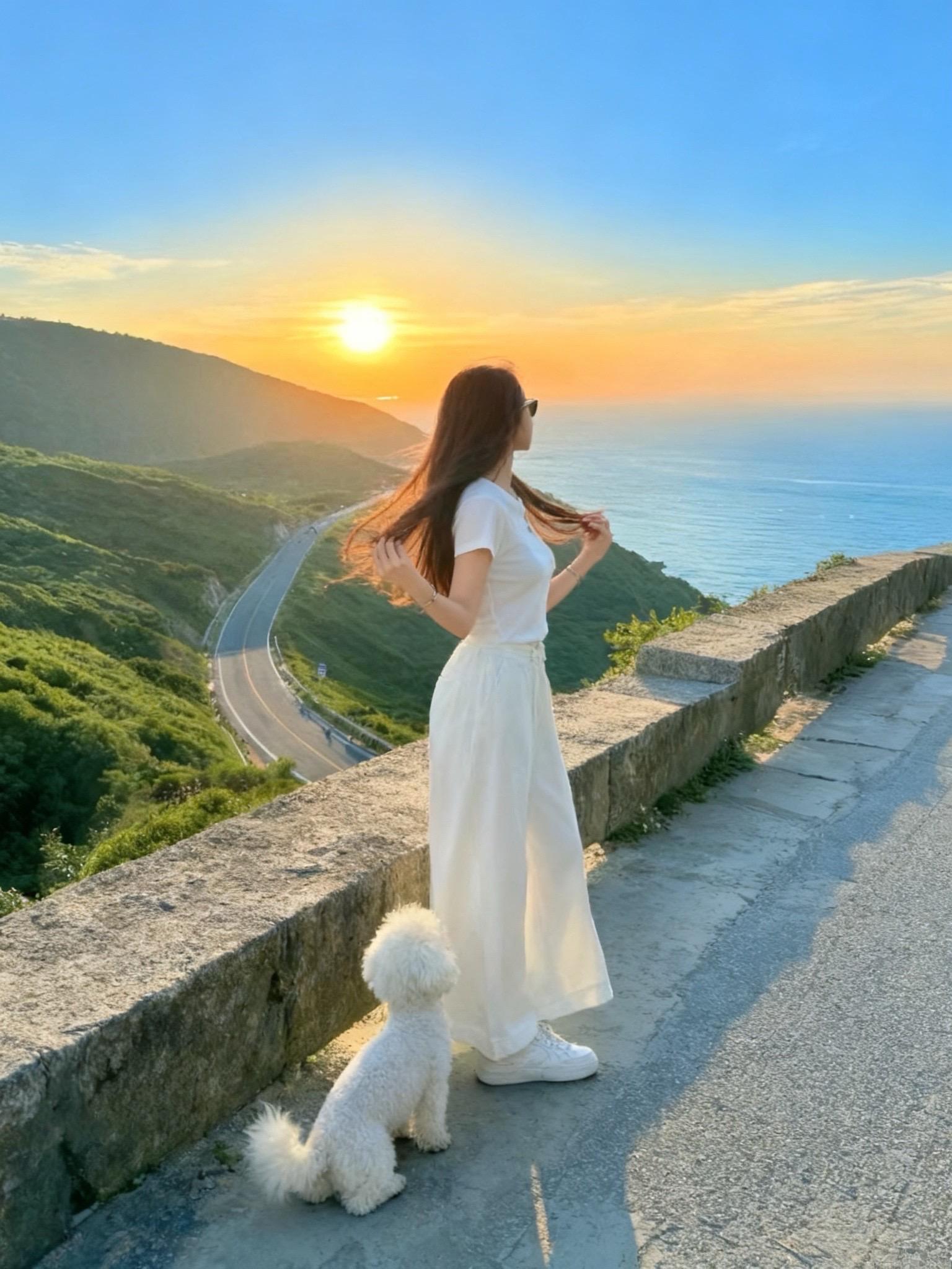海边拍照带着狗狗去旅行度假穿搭摄影约拍海边拍照